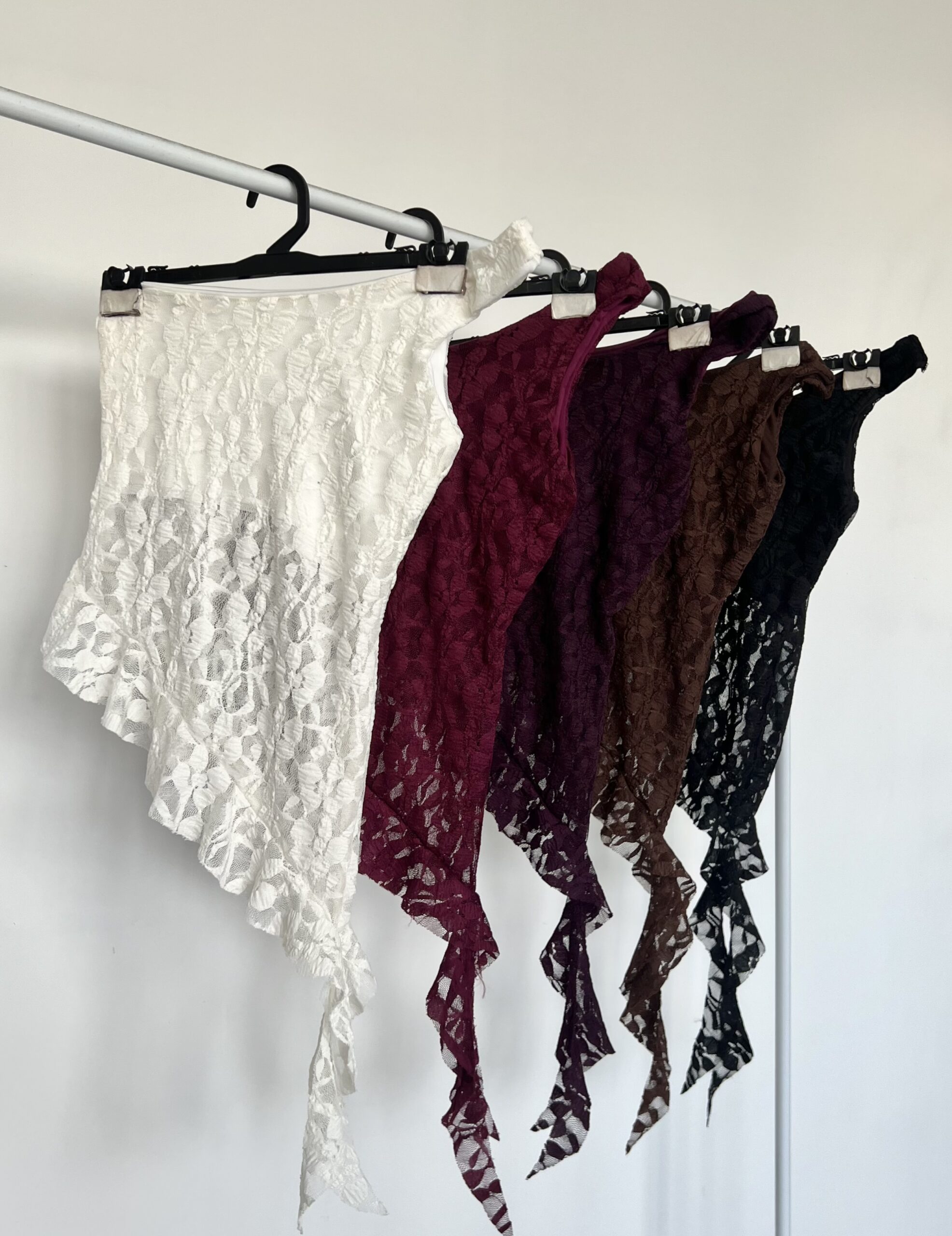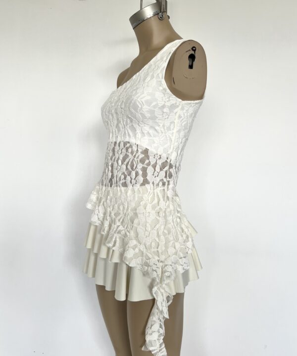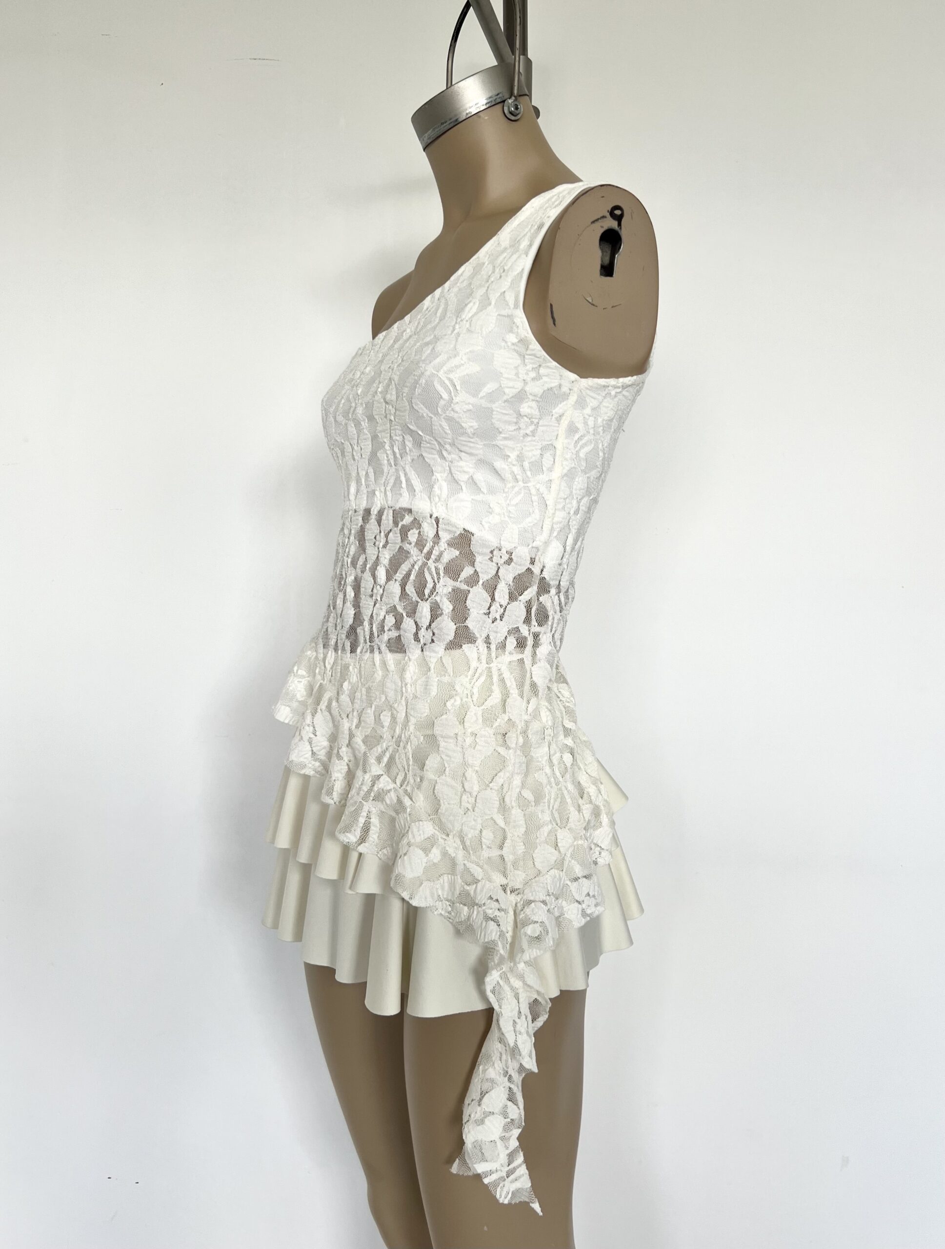 1130/E-TOP UN HOMBRO ENCAJE GOYA PICO CON VOLADO CAIDO