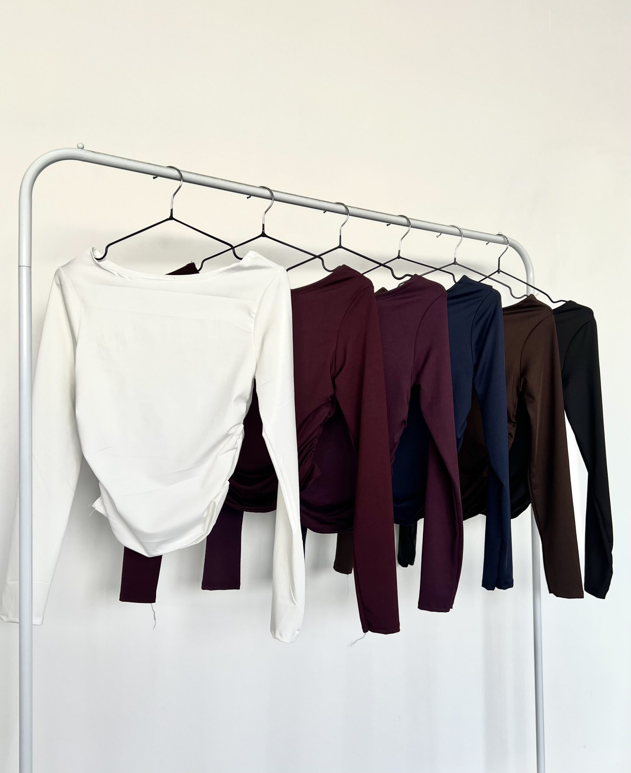 1674/M-TOP MICROFIBRA CUELLO BOTE MANGA LARGA LATERALES FRUNCIDOS - blanco BLANCO en stock $0