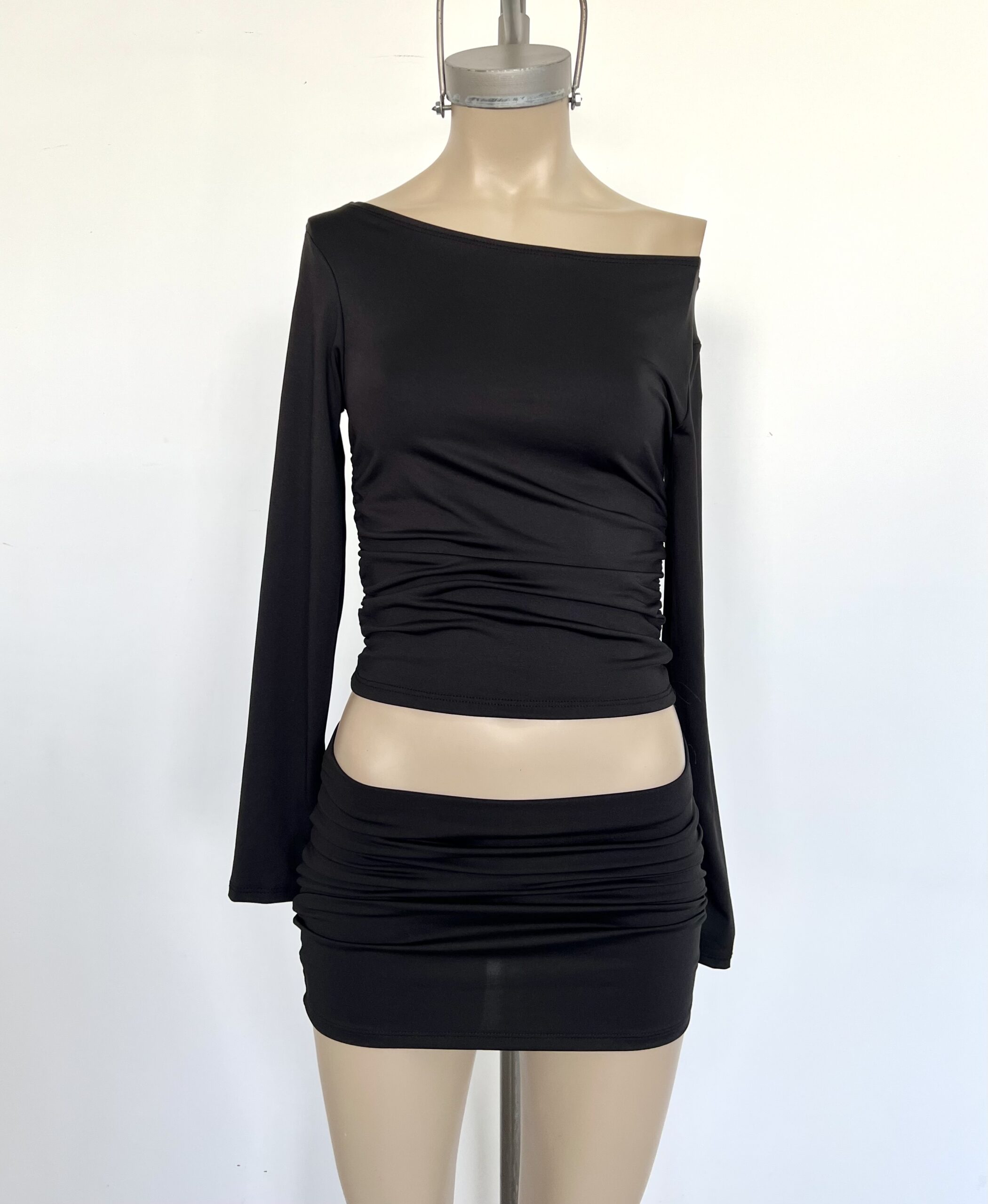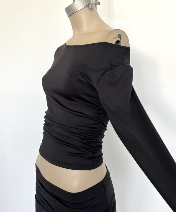 1674/M-TOP MICROFIBRA CUELLO BOTE MANGA LARGA LATERALES FRUNCIDOS - negro NEGRO en stock $0