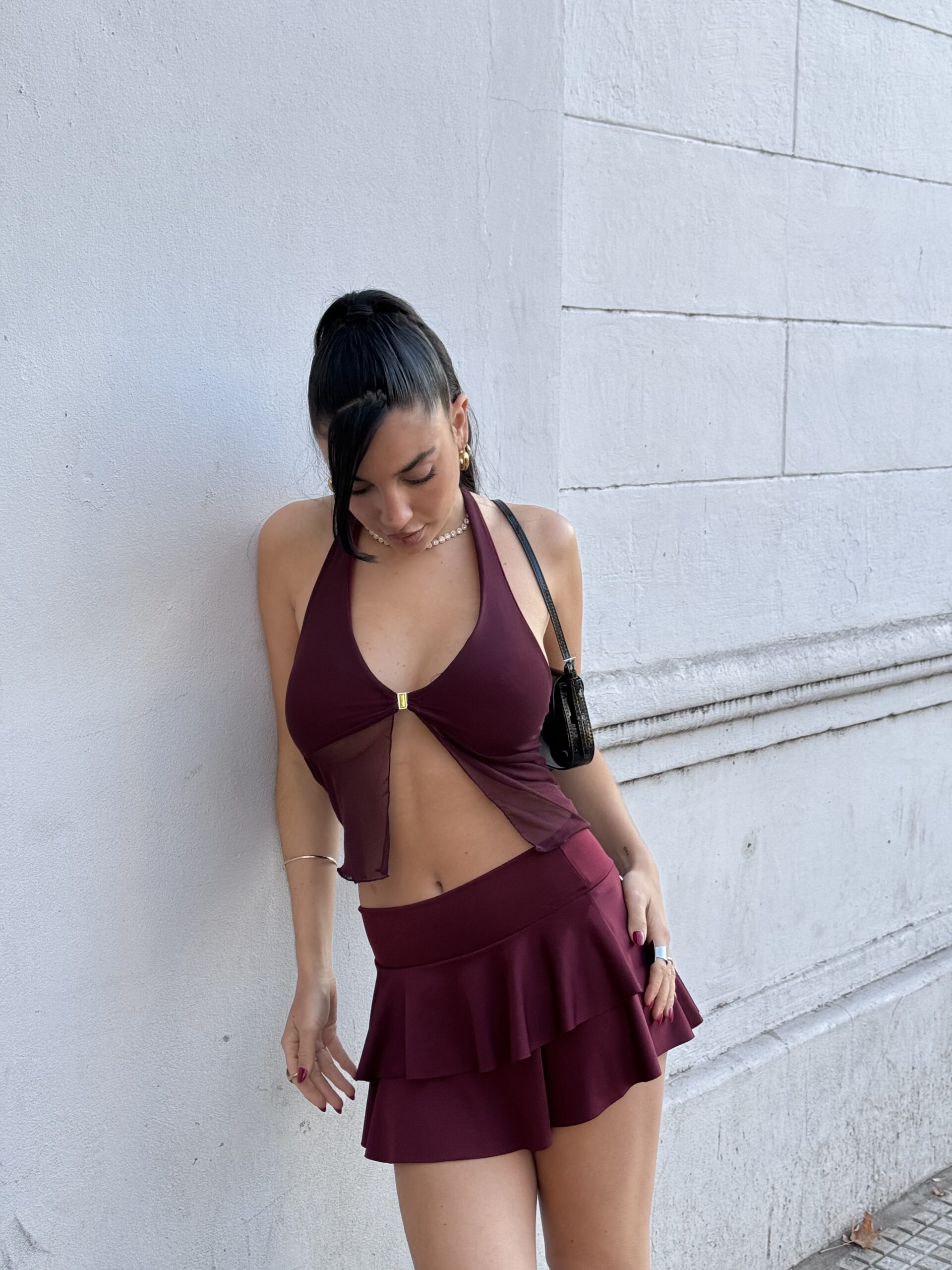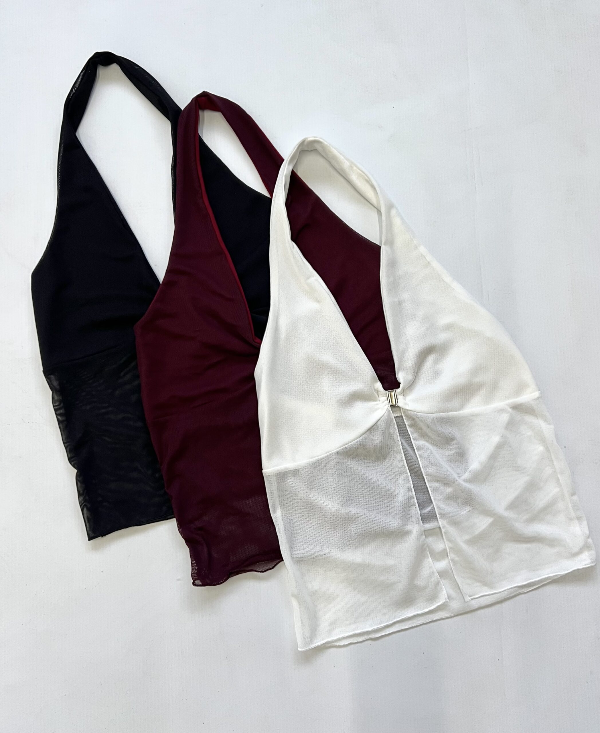 1844/T-TOP MARILYN TUL LISO CON HEBILLA BROCHE CENTRO