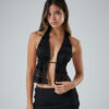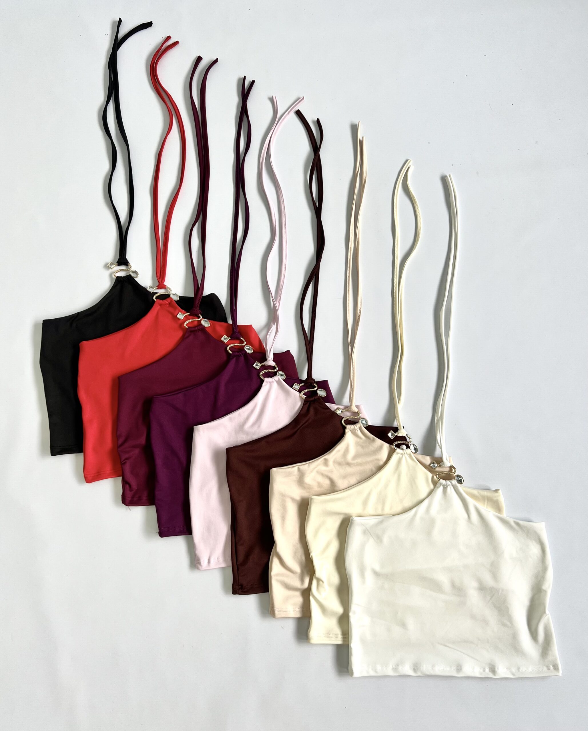 1916/M-TOP MICROFIBRA HALTER HEBILLA S DIAMANTE CON TIRA PARA ATAR CUELLO