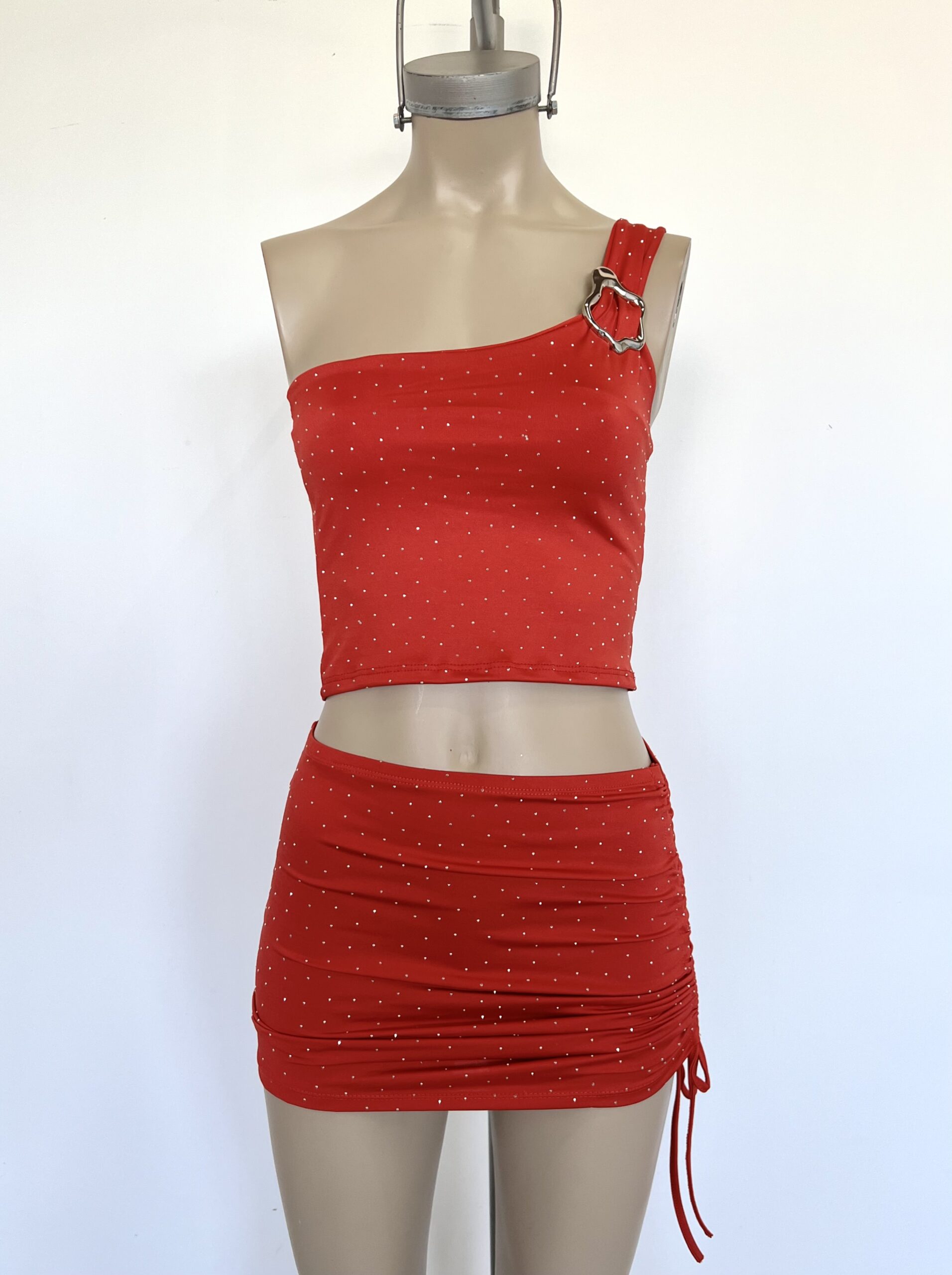 2107/MS-TOP MICROFIBRA BRILLO STRASS UN HOMBRO CON HEBILLA NUBE Y PECHERA FORRADO - rojo ROJO en stock $0
