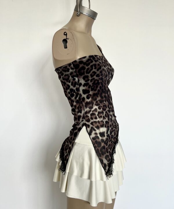 2108/TA-TOP UN HOMBRO TUL ANIMAL PICO CON PUNTILLA FLECOS