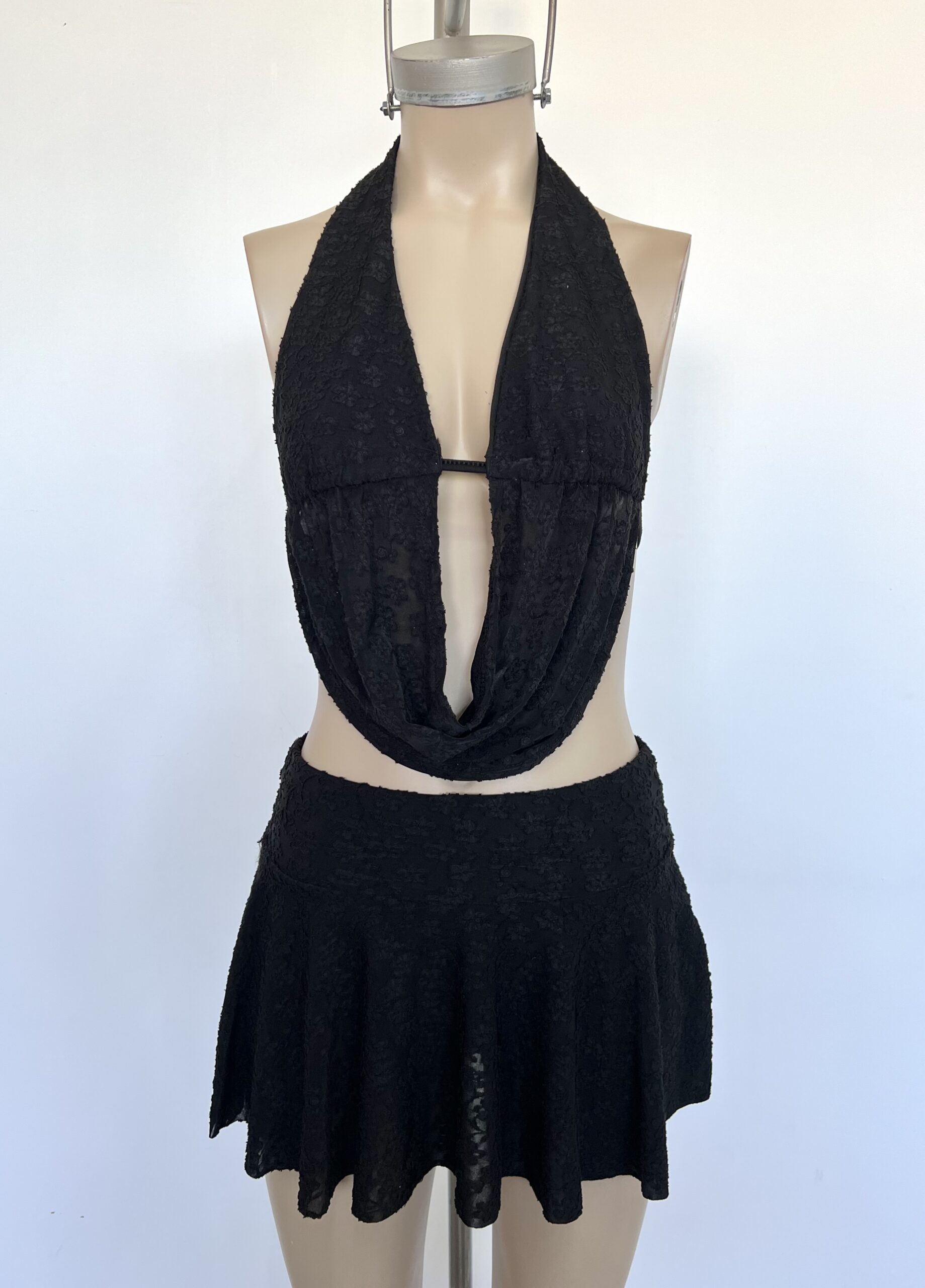 2113/J-TOP JACQUARD MARILYN CORPIÑO BAJO BUSTO FRUNCE CORDON CON VOLADO BUCHE - negro NEGRO en stock $0
