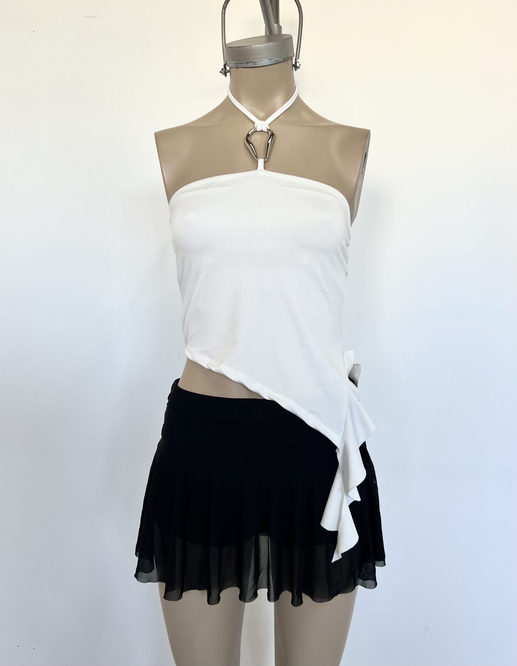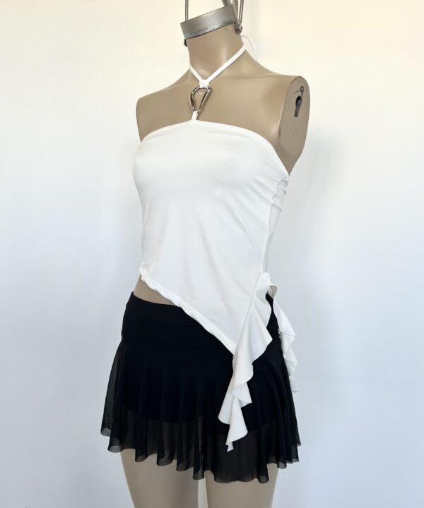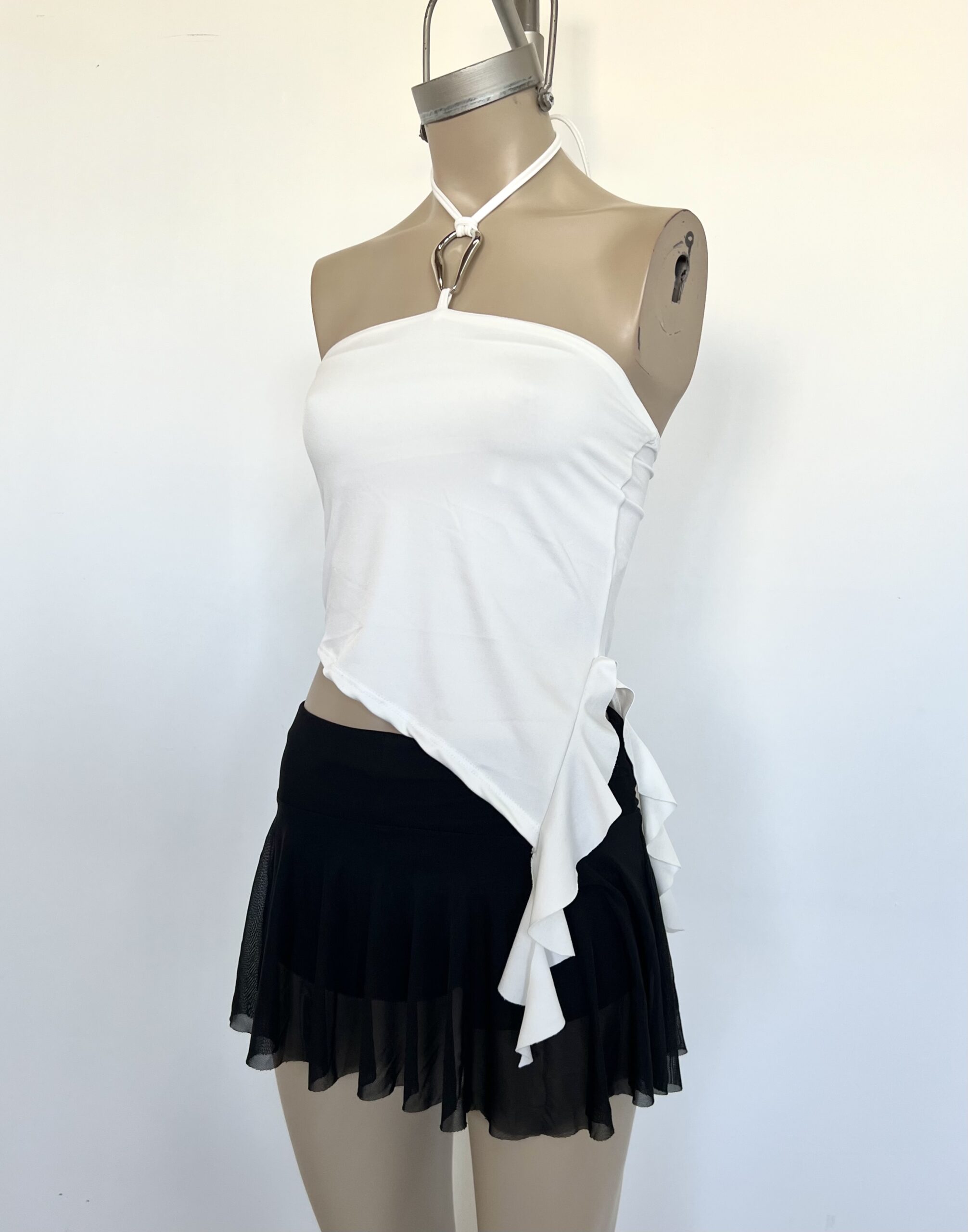 2201/M-TOP MICROFIBRA BANDO HEBILLA HALTER PARA ATAR CUELLO CON PICO VOLADO CAIDO COSTADO