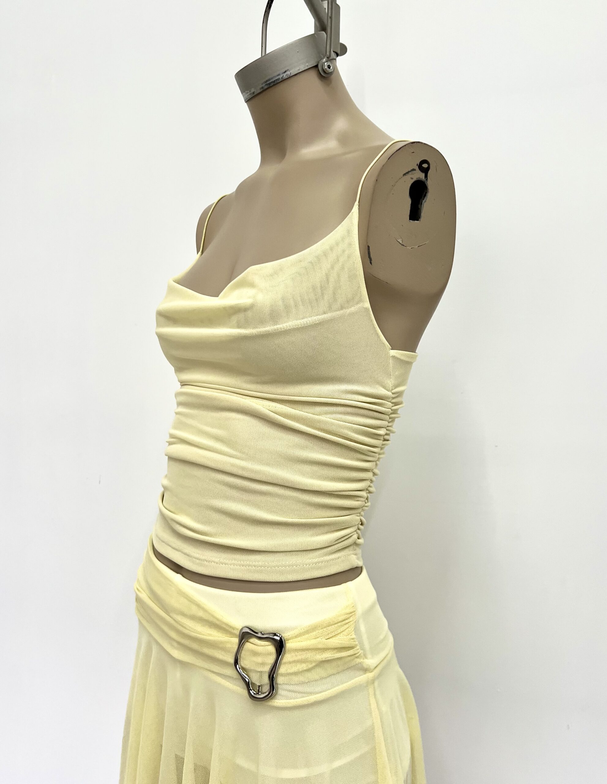 2210/T-TOP TUL LISO SEMIBUCHE CON BRETEL COLA DE RATA FORRADO - amarillo AMARILLO en stock $0