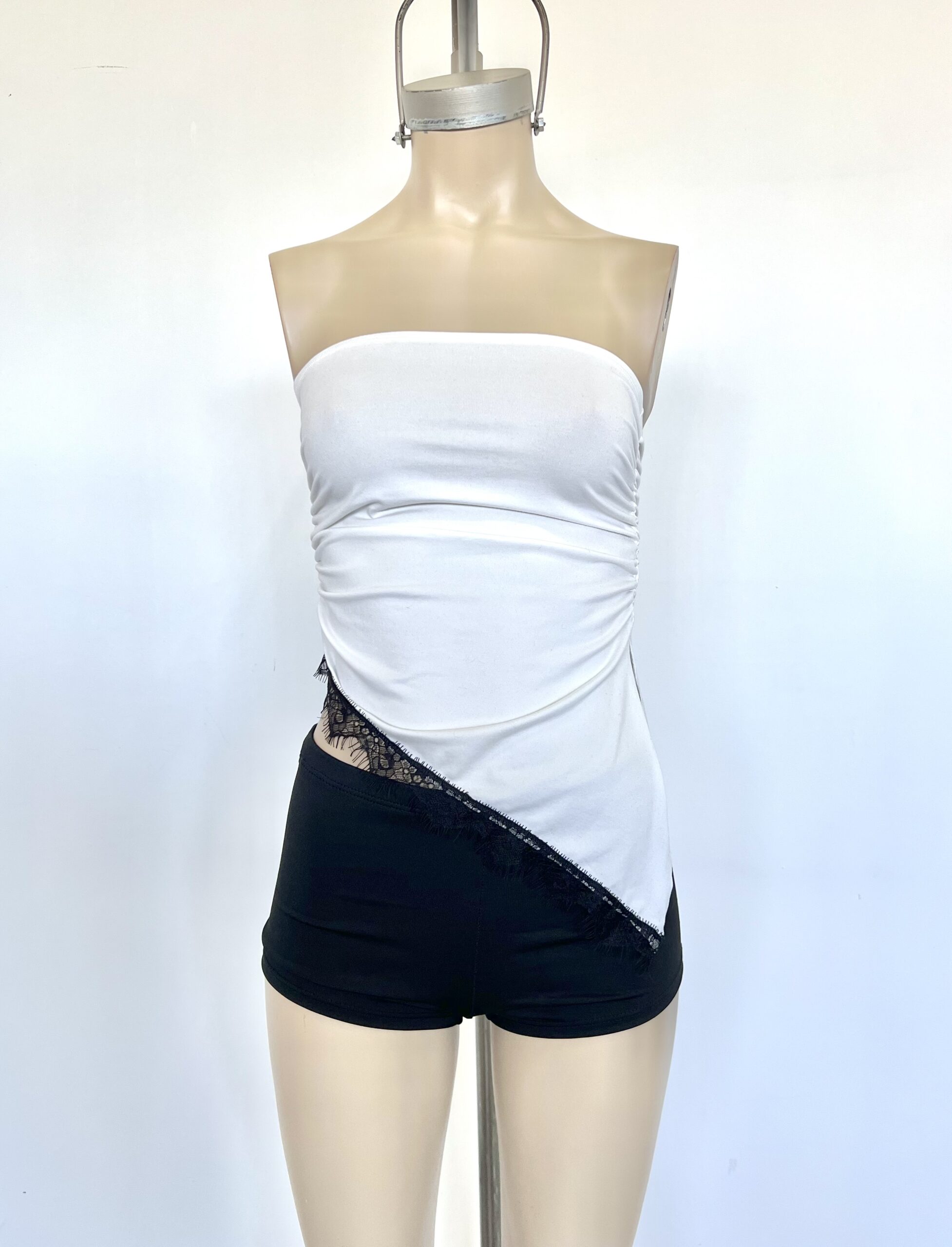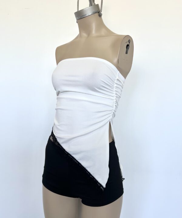 2235-TOP BANDO MODAL SOFT PICO CON PUNTILLA FLECOS Y ELASTICO FRUNCE LATERAL - blanco BLANCO en stock $0