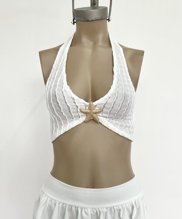 2422/CR-TOP CROCHET ONDITAS CENTRO HEBILLA ESTRELLA GRANDE CON TIRA ANCHA PARA ATAR CUELLO