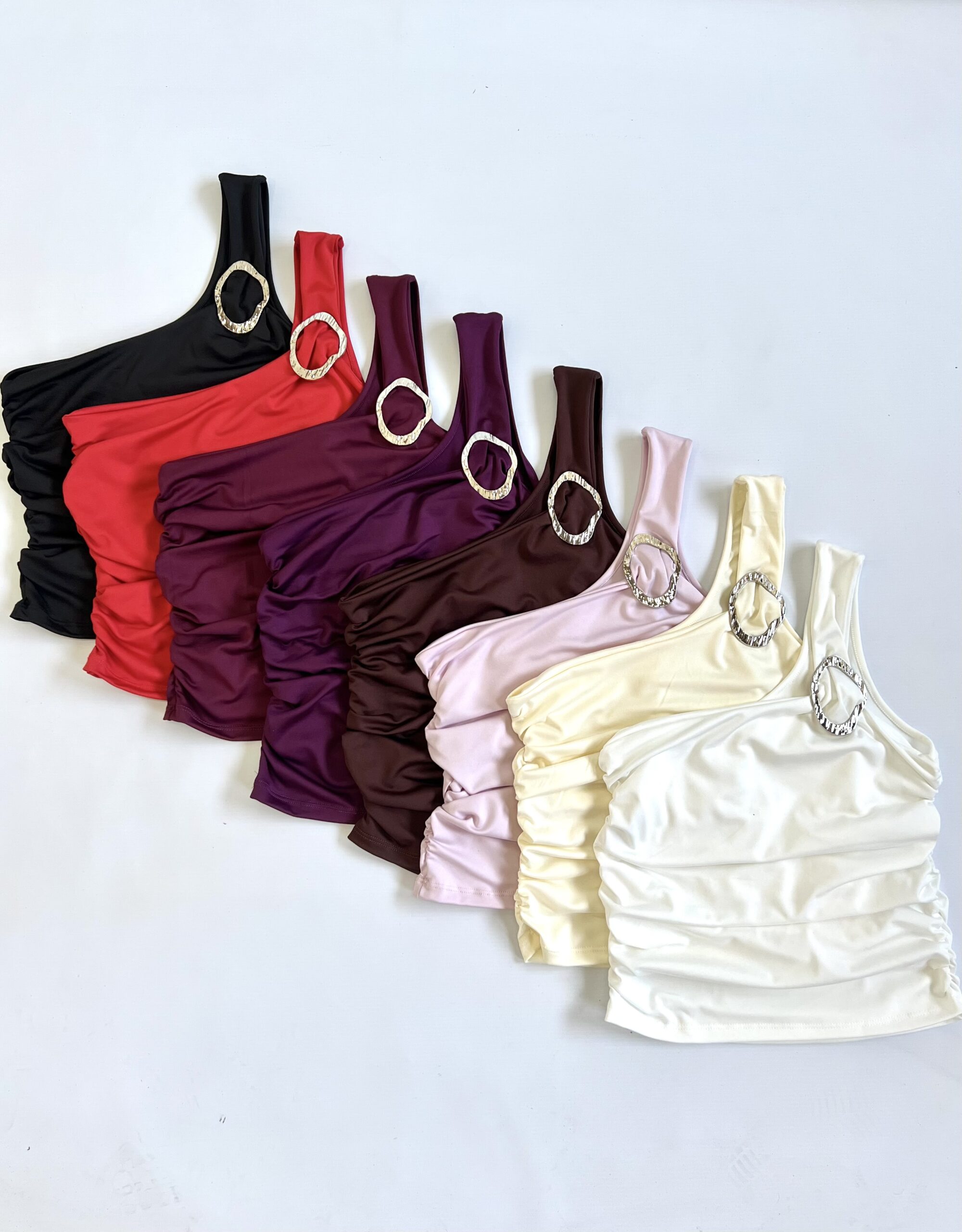 2520/M-TOP MICROFIBRA UN HOMBRO HEBILLA OPACO RELIEVE LATERALES ELASTICO FRUNCE - rojo ROJO en stock $0