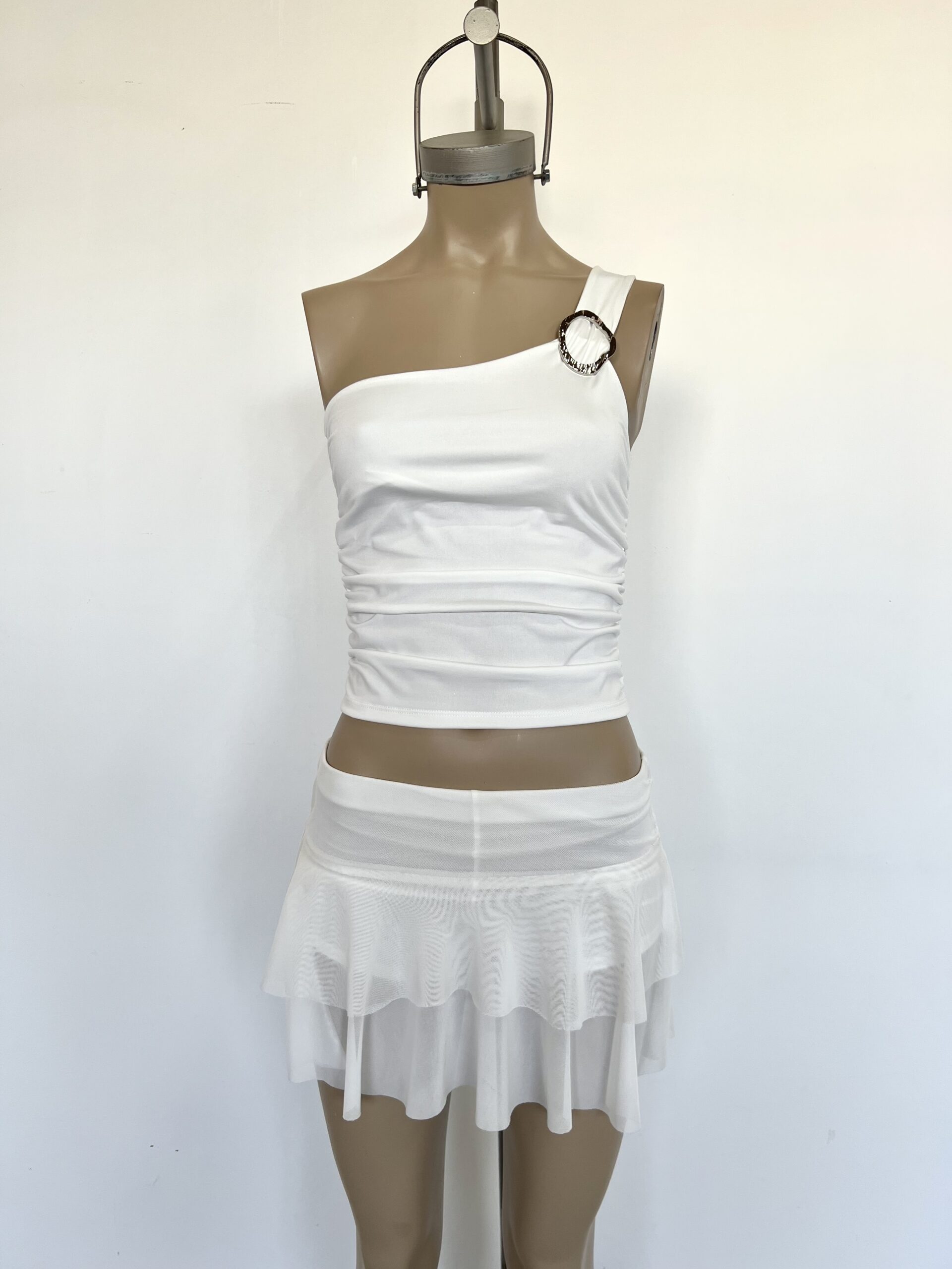 2520/M-TOP MICROFIBRA UN HOMBRO HEBILLA OPACO RELIEVE LATERALES ELASTICO FRUNCE - blanco BLANCO en stock $0