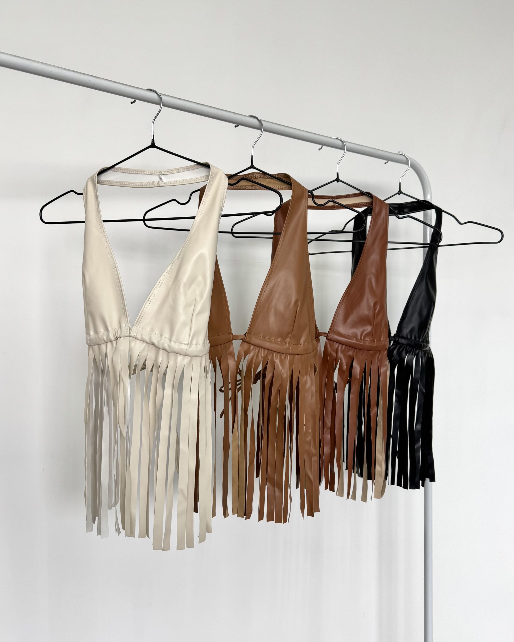 2960/C-TOP CUERINA CORDON FRUNCE BAJO BUSTO Y FLECOS - crudo CRUDO en stock $0