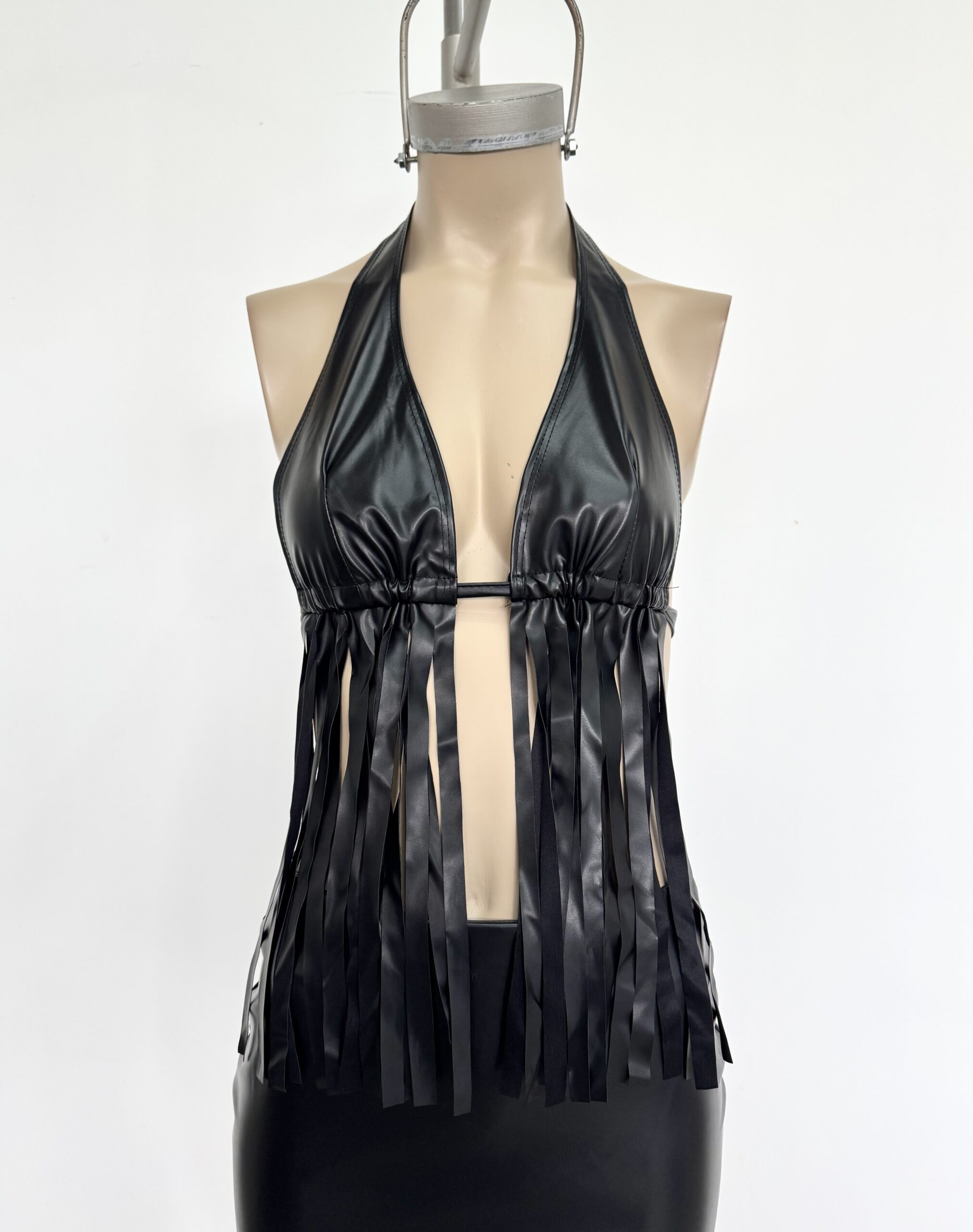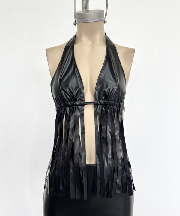 2960/C-TOP CUERINA CORDON FRUNCE BAJO BUSTO Y FLECOS