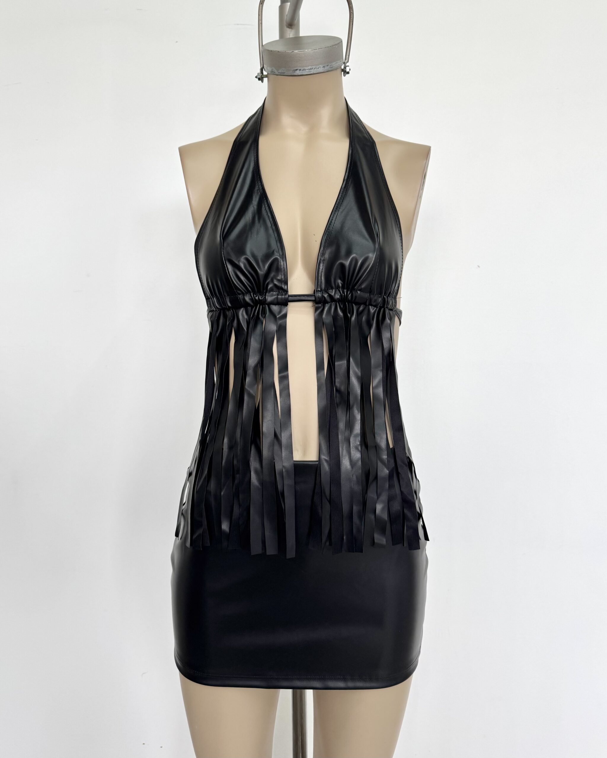 2960/C-TOP CUERINA CORDON FRUNCE BAJO BUSTO Y FLECOS - negro NEGRO en stock $0