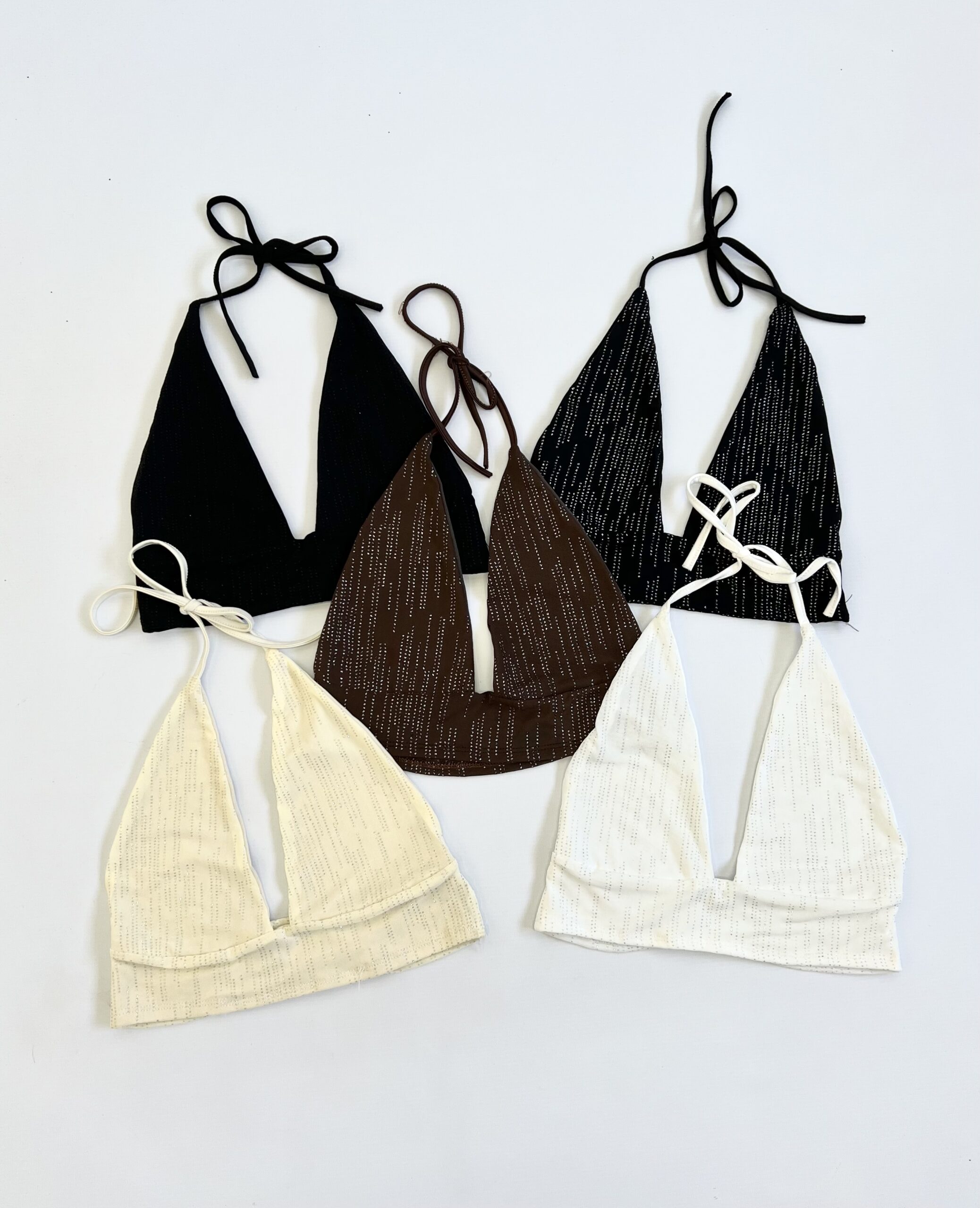 3028/TB-TOP CORPIÑO TUL BRILLO DELANTERA FORRADO CON TIRA PARA ATAR CUELLO - choco CHOCO en stock $0