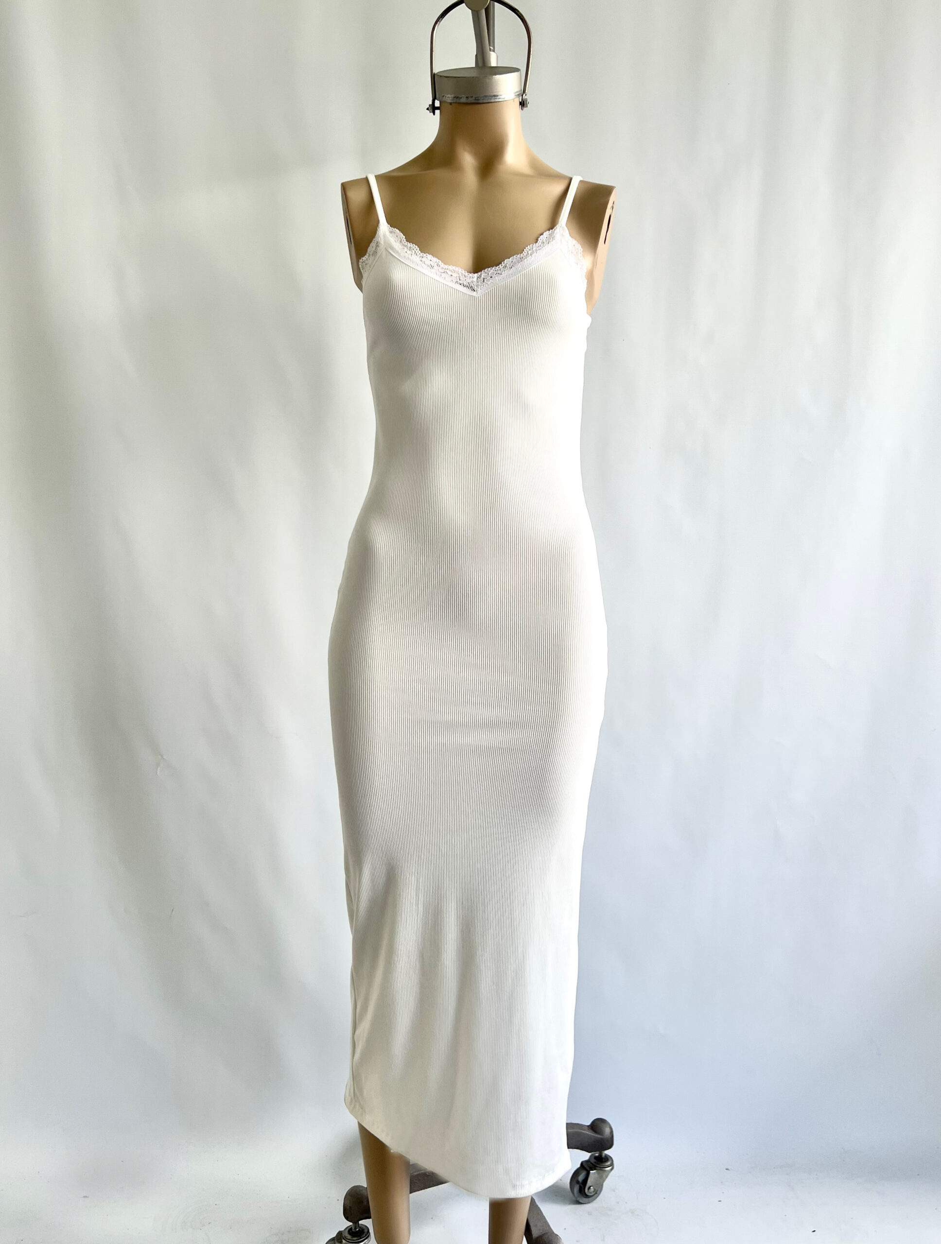 336/4-VESTIDO LARGO MORLEY TAO TIRITA CON PUNTILLA ANCHO ESCOTE V Y TAJO LATERAL - blanco BLANCO en stock $0