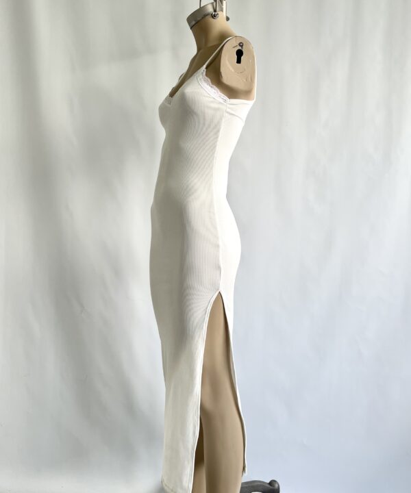 336/4-VESTIDO LARGO MORLEY TAO TIRITA CON PUNTILLA ANCHO ESCOTE V Y TAJO LATERAL