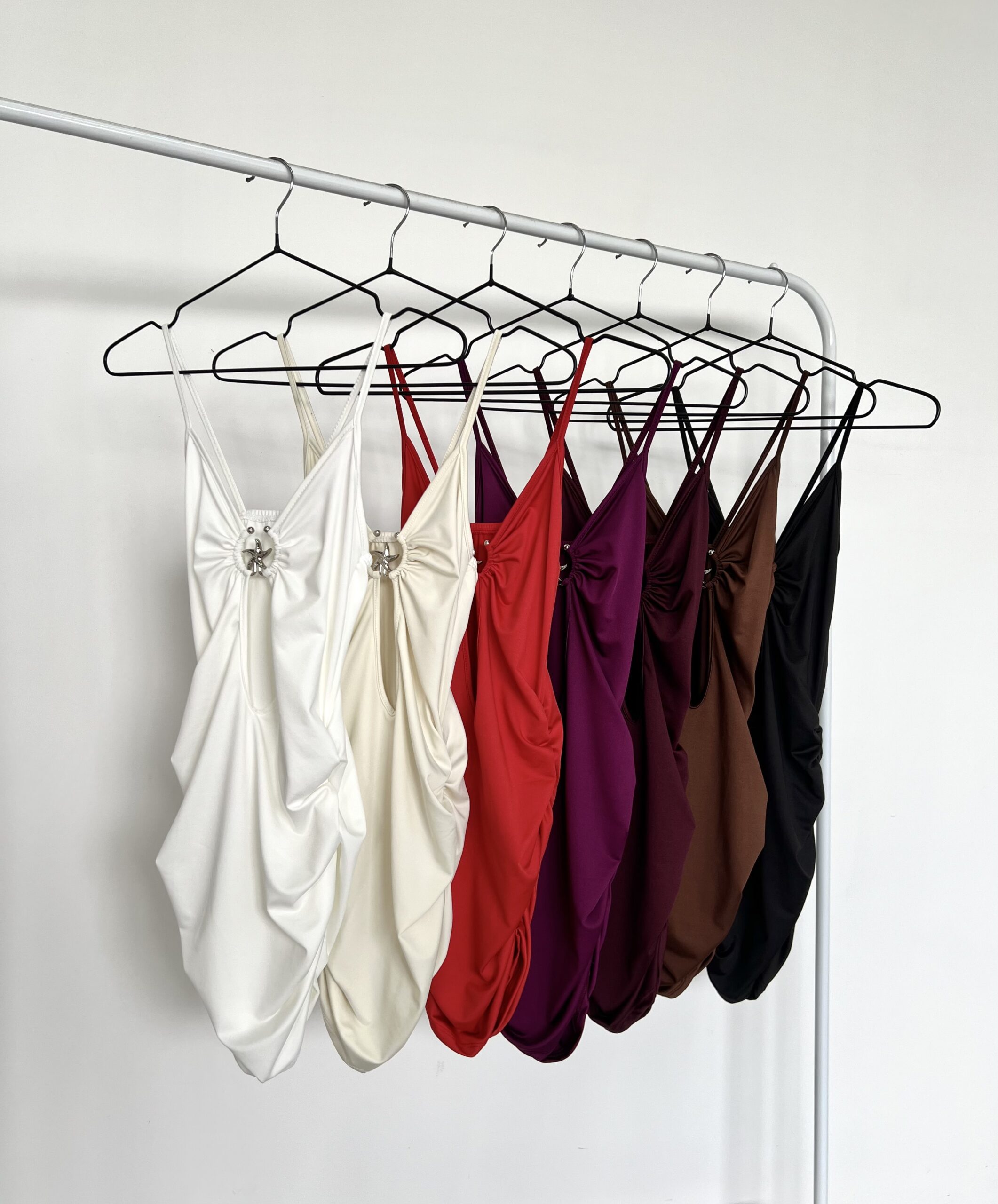 438/M-VESTIDO MICROFIBRA TIRITA HEBILLA CIRCULO ESTRELLA Y ELASTICO FRUNCE LATERALES - vino VINO en stock $0
