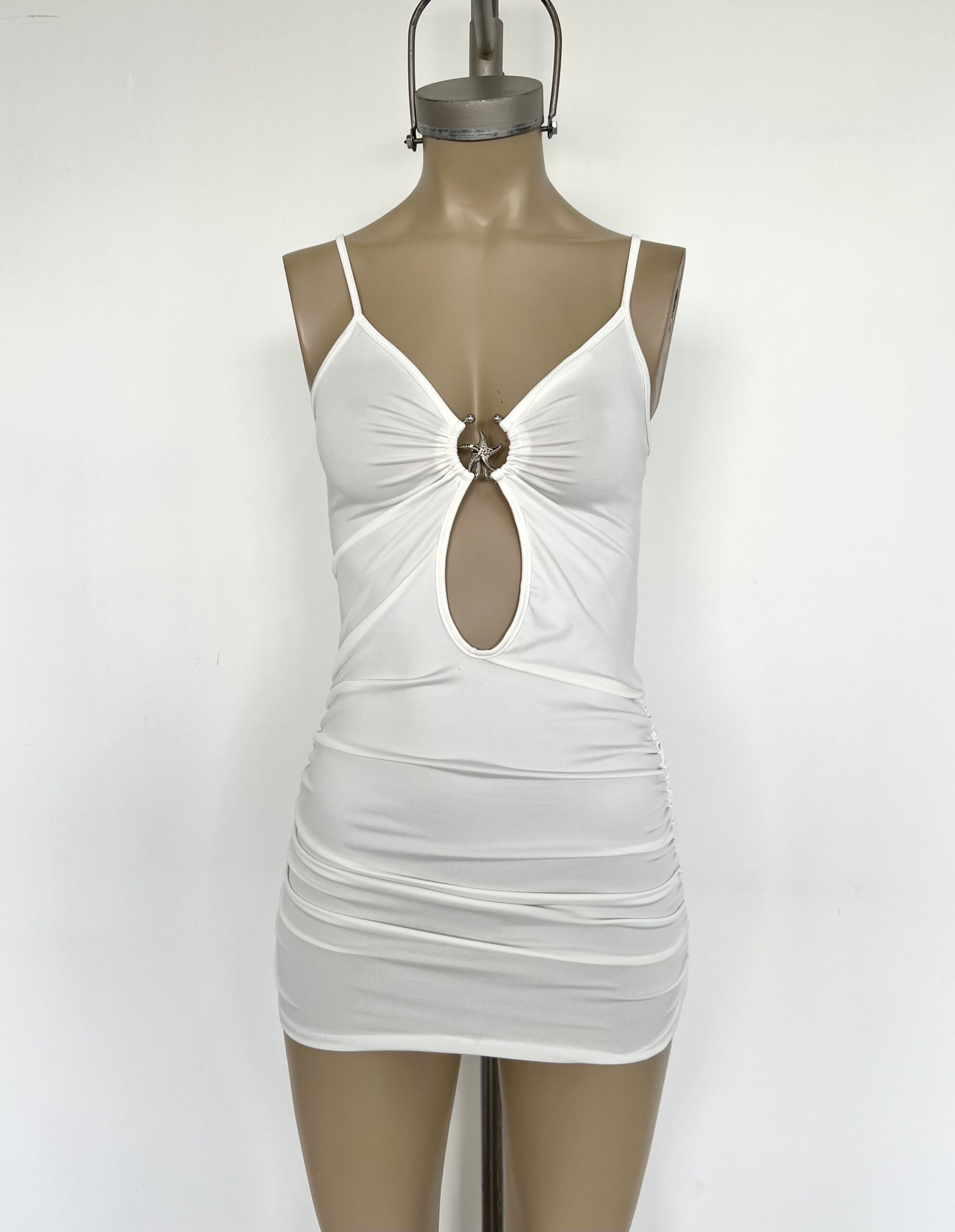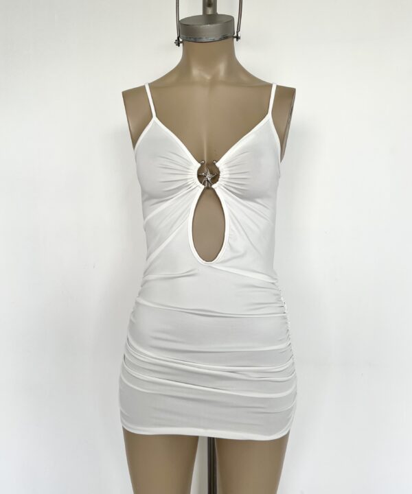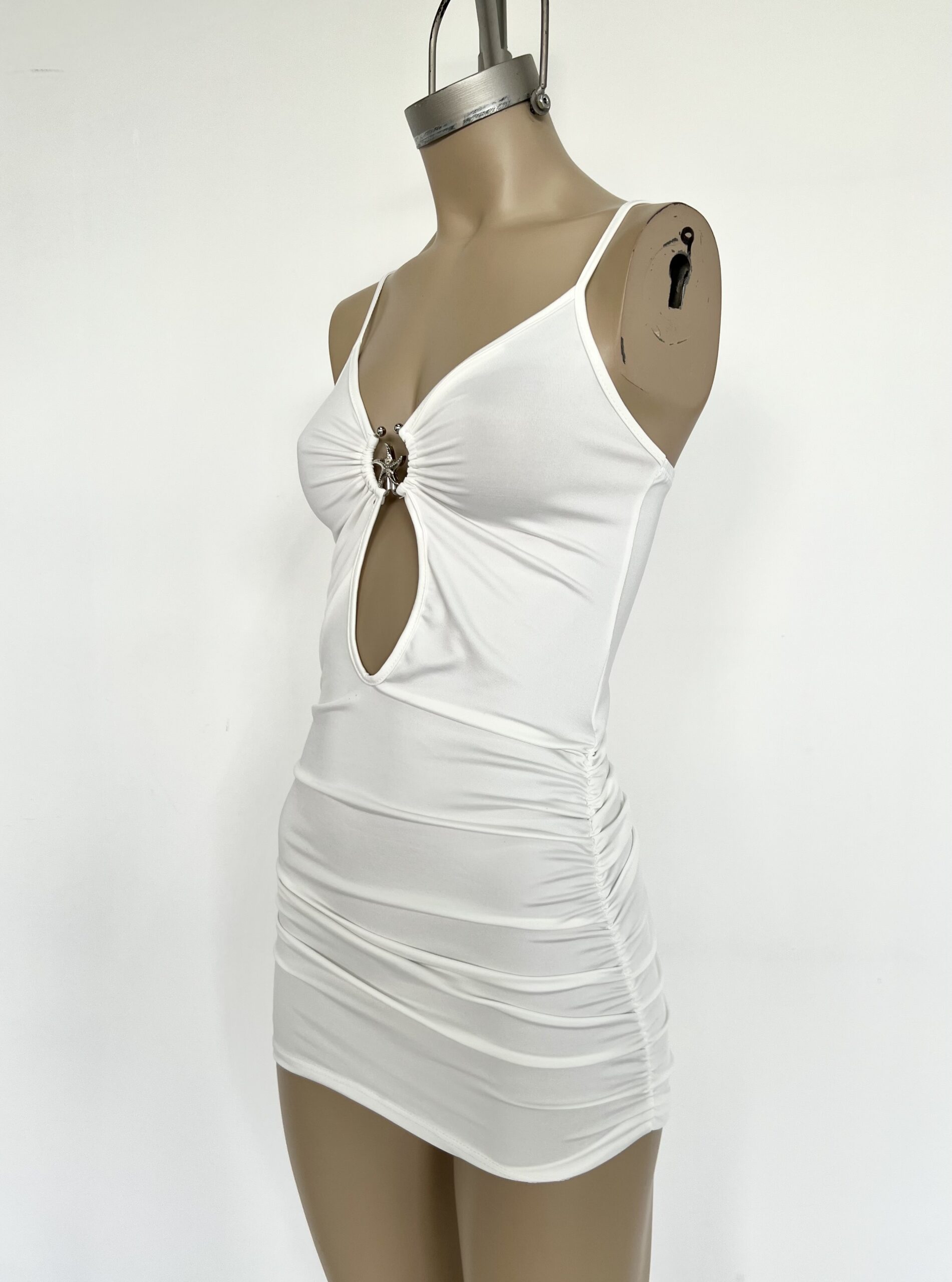 438/M-VESTIDO MICROFIBRA TIRITA HEBILLA CIRCULO ESTRELLA Y ELASTICO FRUNCE LATERALES - blanco BLANCO en stock $0