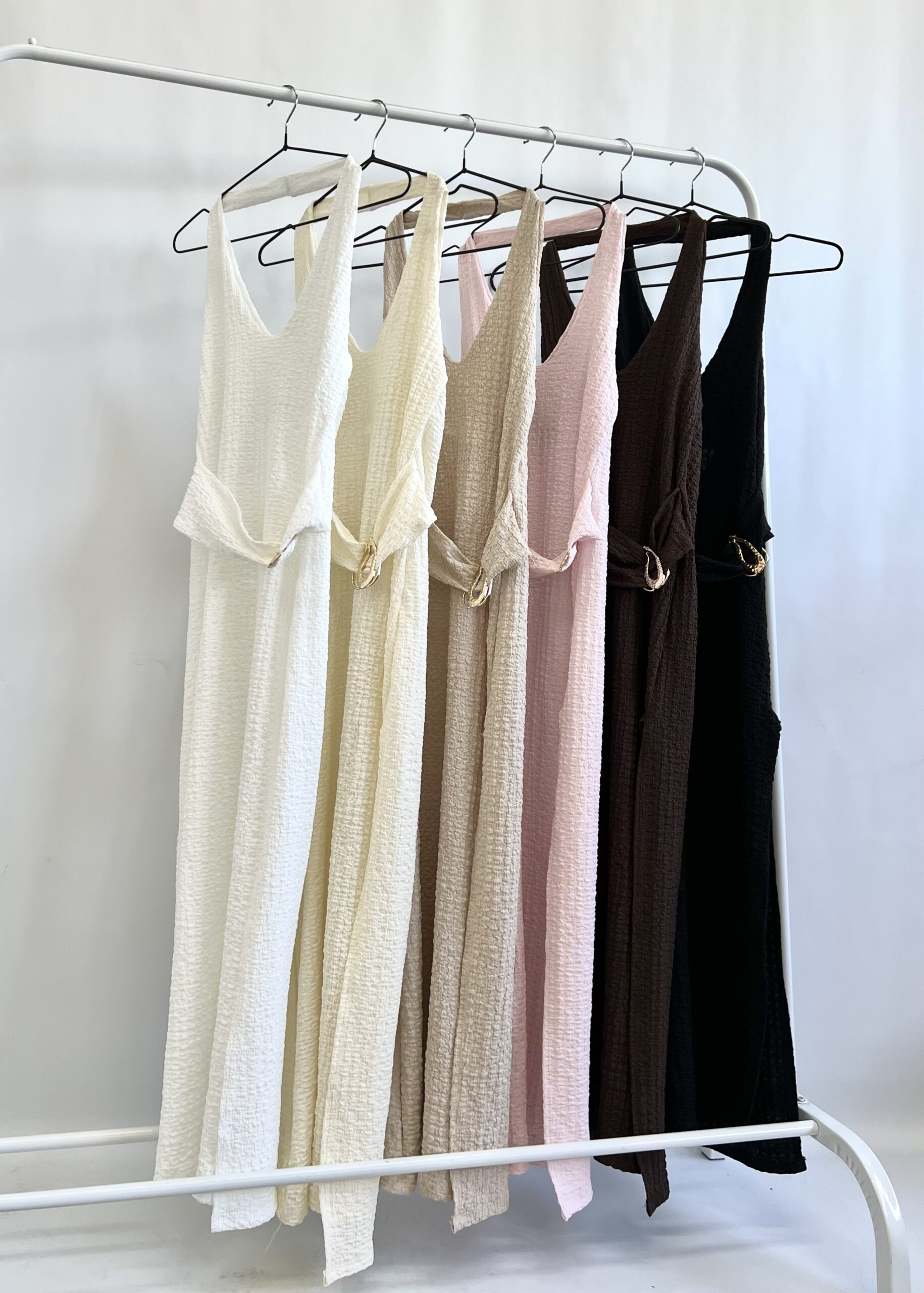 458/BA-VESTIDO LARGO BAMBULA MARILYN FORRADO PECHERA CON CINTURON HEBILLA GOTA Y TAJO - crudo CRUDO en stock $0