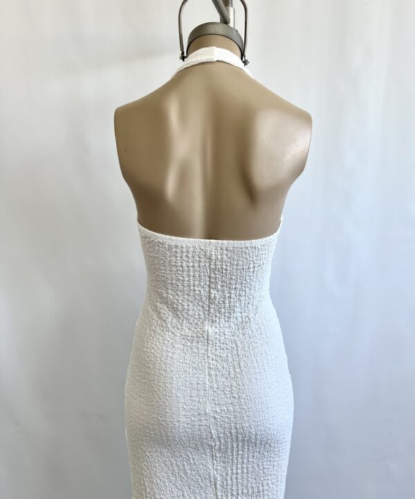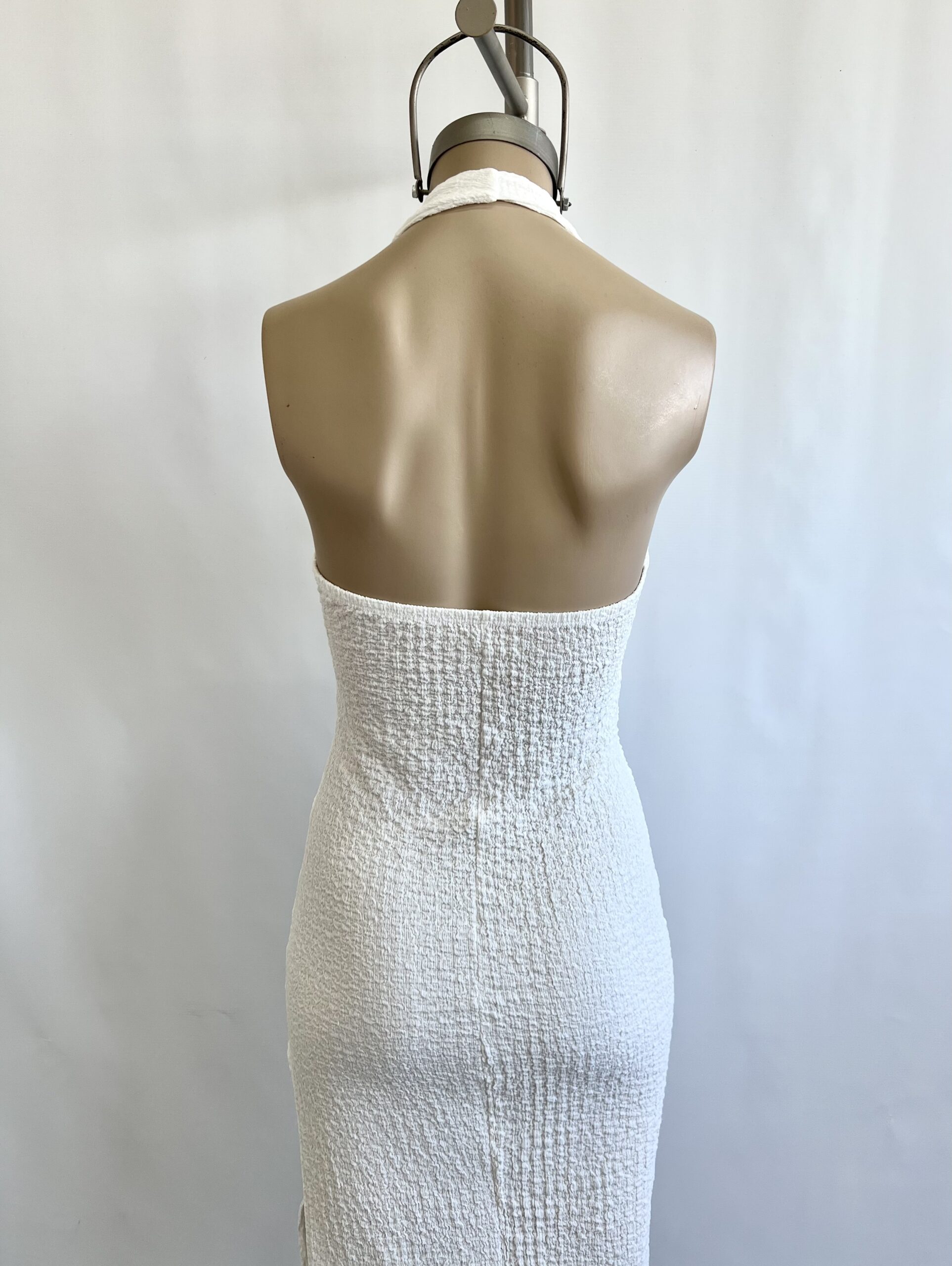 458/BA-VESTIDO LARGO BAMBULA MARILYN FORRADO PECHERA CON CINTURON HEBILLA GOTA Y TAJO - blanco BLANCO en stock $0