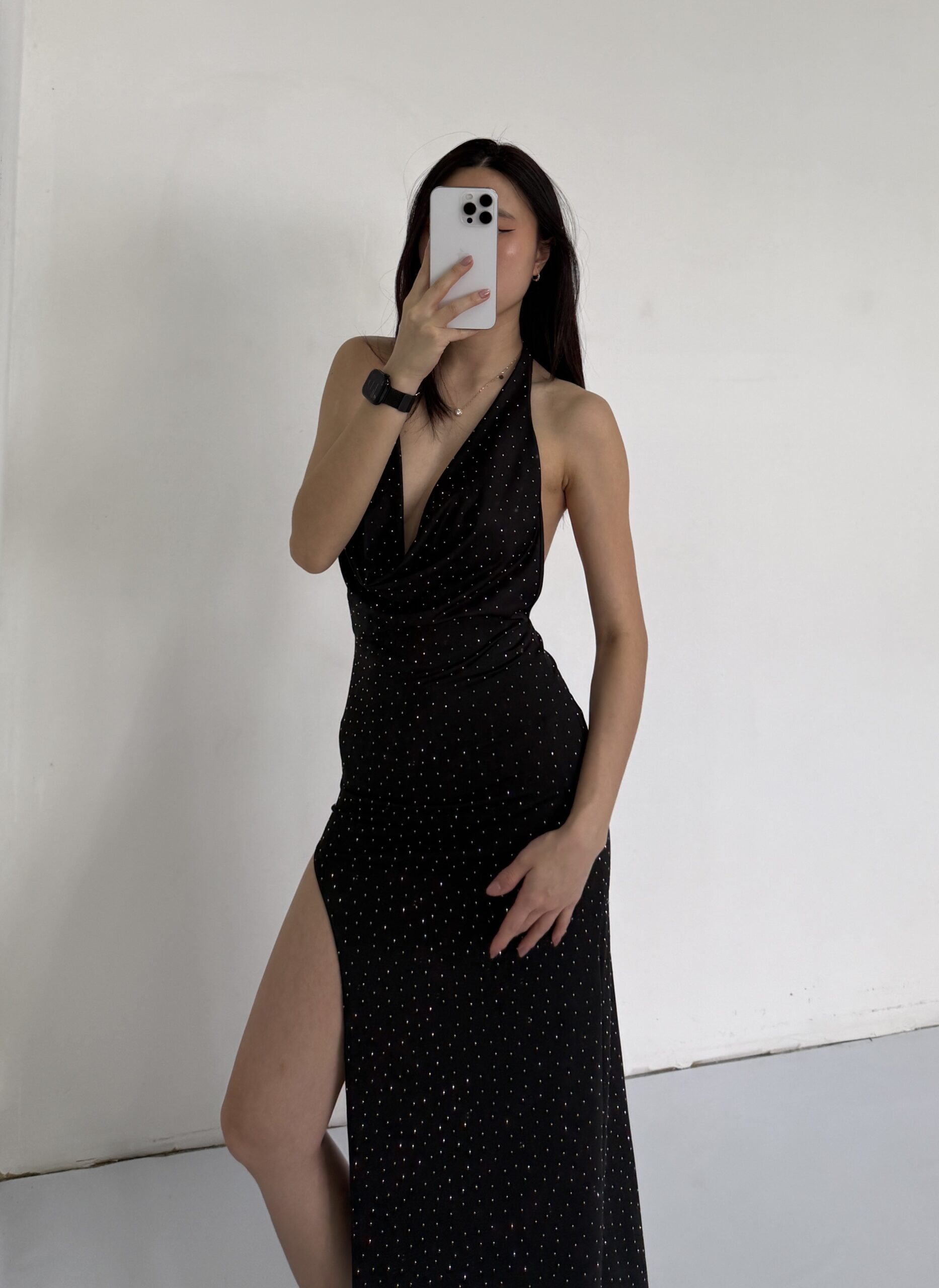 480/MS-VESTIDO MICROFIBRA STRASS BUCHE CON HEBILLA B ESPALDA DESCUBIERTA