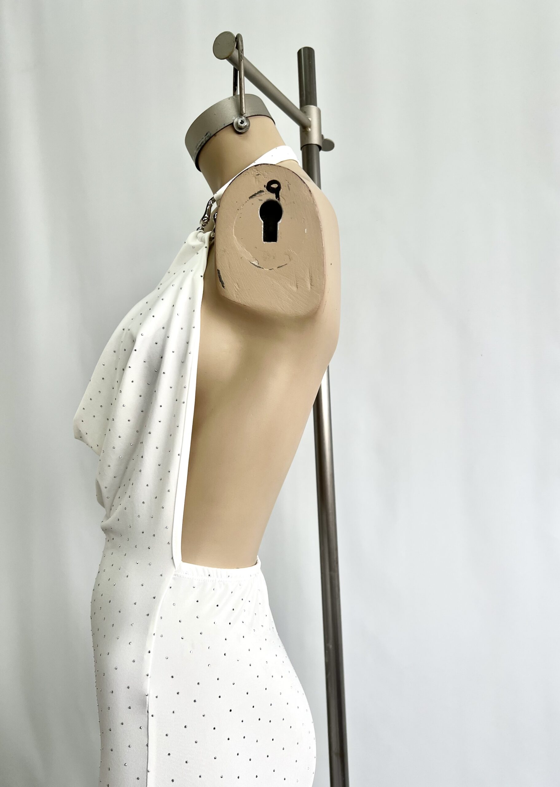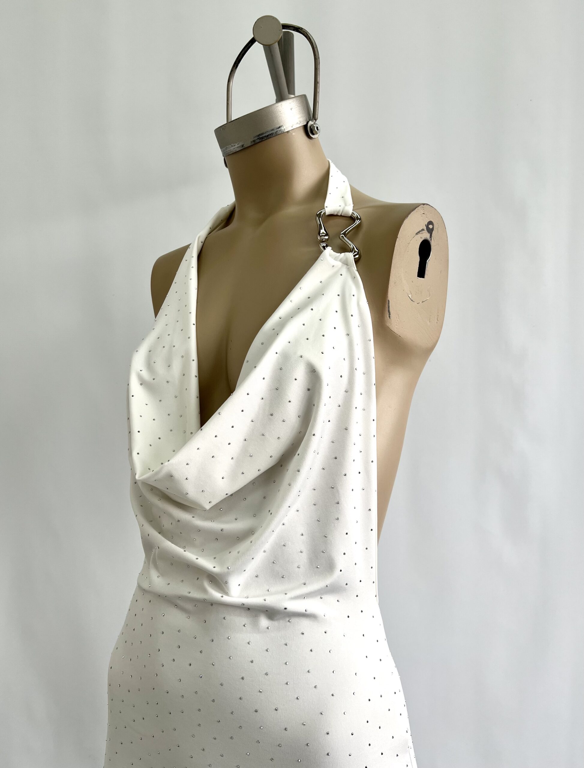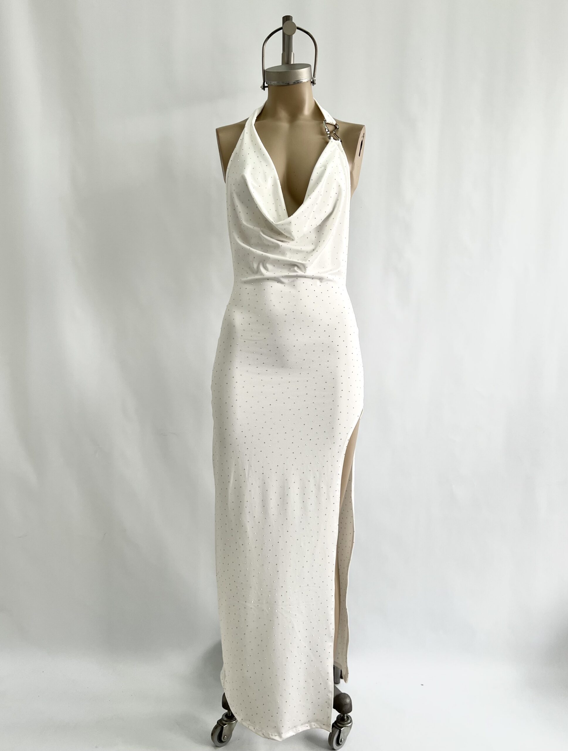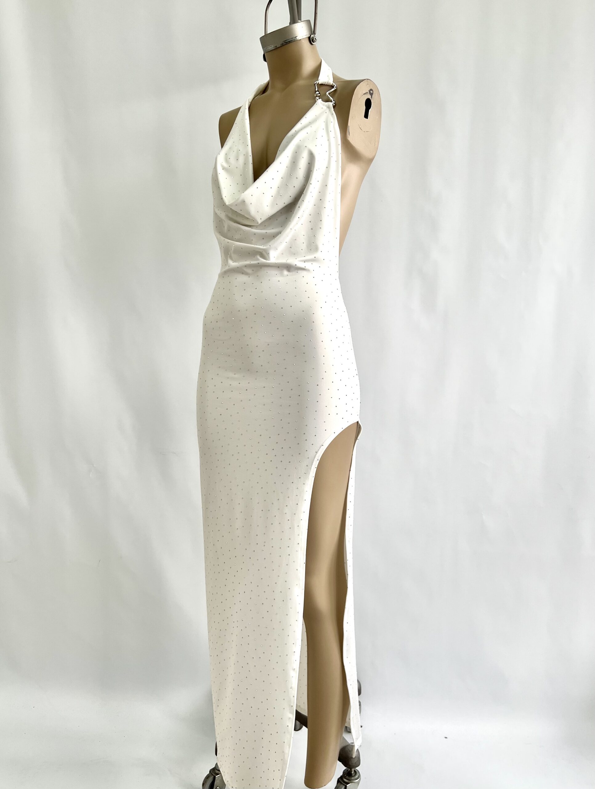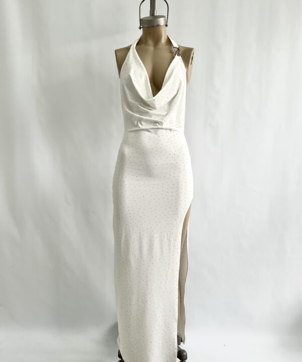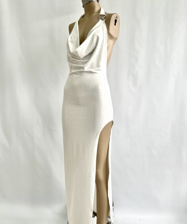 480/MS-VESTIDO MICROFIBRA STRASS BUCHE CON HEBILLA B ESPALDA DESCUBIERTA - blanco BLANCO en stock $0