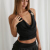 6060/M-BODY MICROFIBRA MARILYN HALTER CRUZADO TIRA PARA ATAR CUELLO Y CENTRO HEBILLA DORADA CON ABERTURA