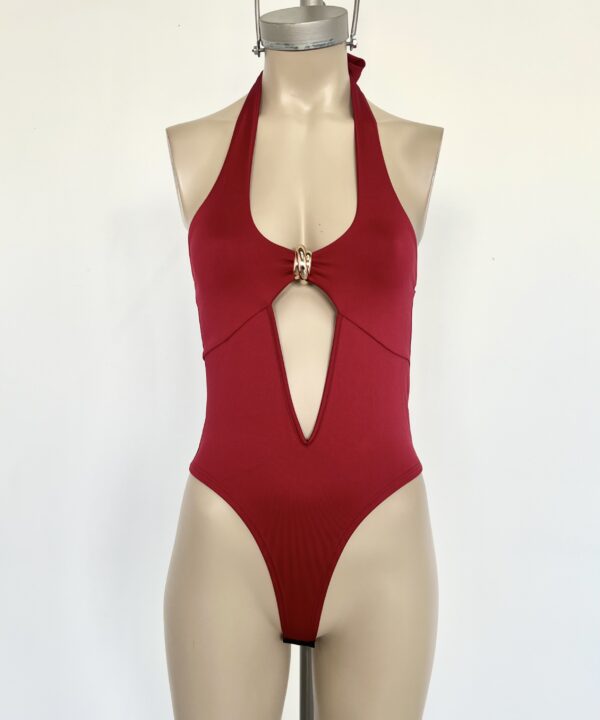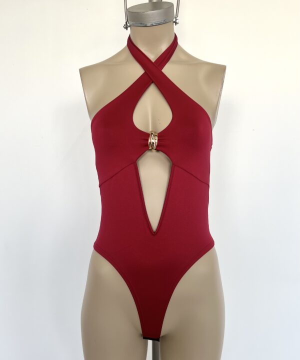 6060/M-BODY MICROFIBRA MARILYN HALTER CRUZADO TIRA PARA ATAR CUELLO Y CENTRO HEBILLA DORADA CON ABERTURA - cherry CHERRY en stock $0