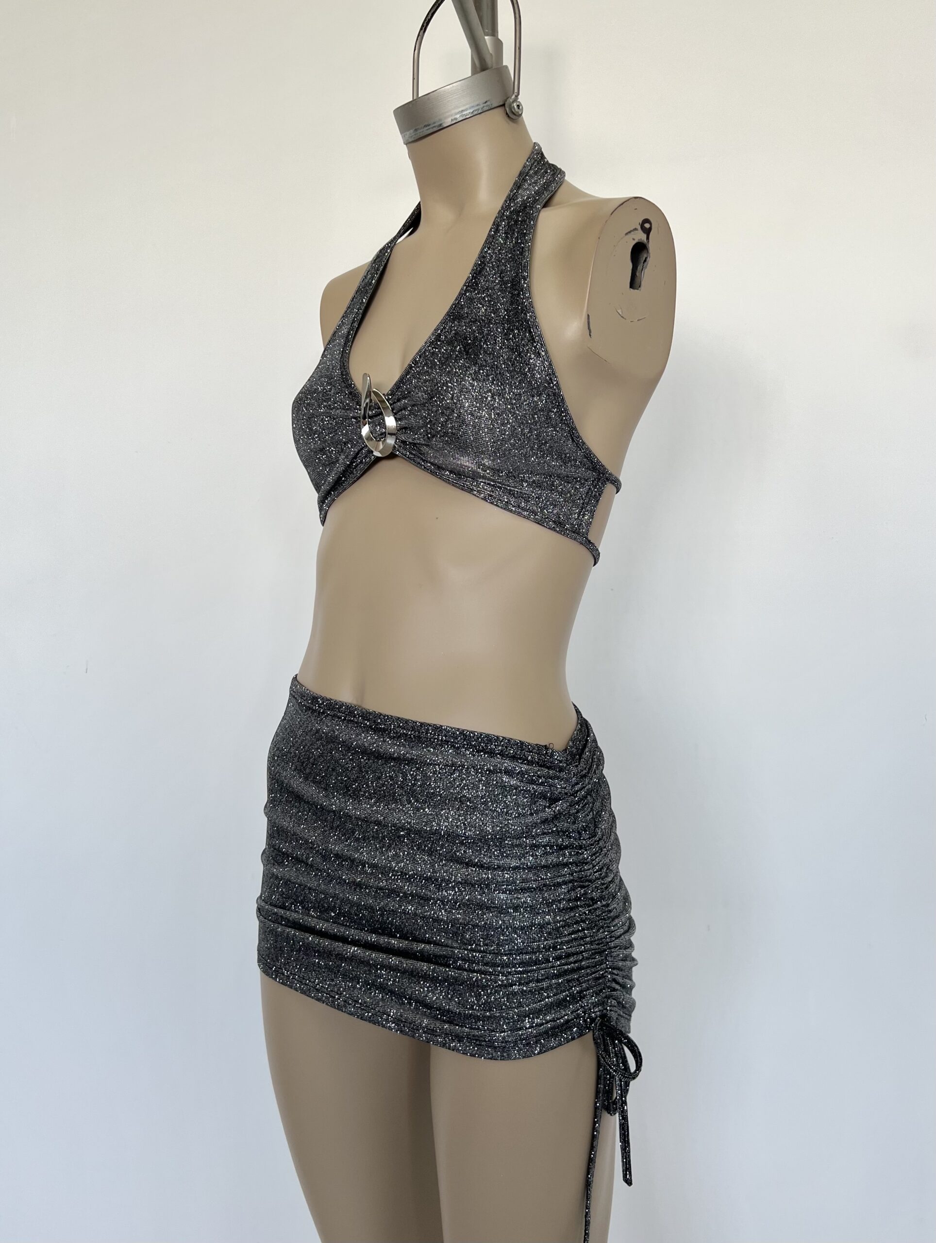 607/G-POLLERA GLITTER CON CORDON FRUNCE LATERAL - negro-plata NEGRO/PLATA en stock $0