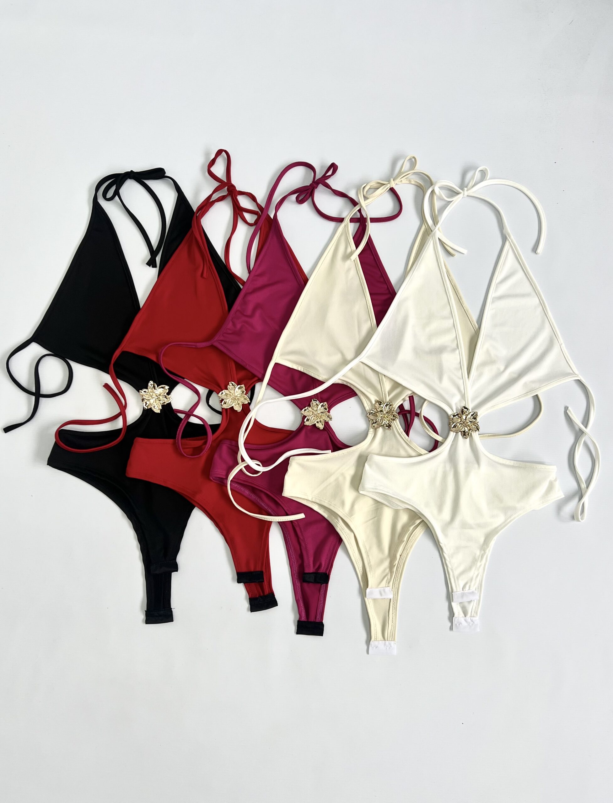 6113/M-BODY MICROFIBRA LATERAL CAVADO Y CENTRO HEBILLA FLOR CON TIRA PARA ATAR CUELLO Y ESPALDA