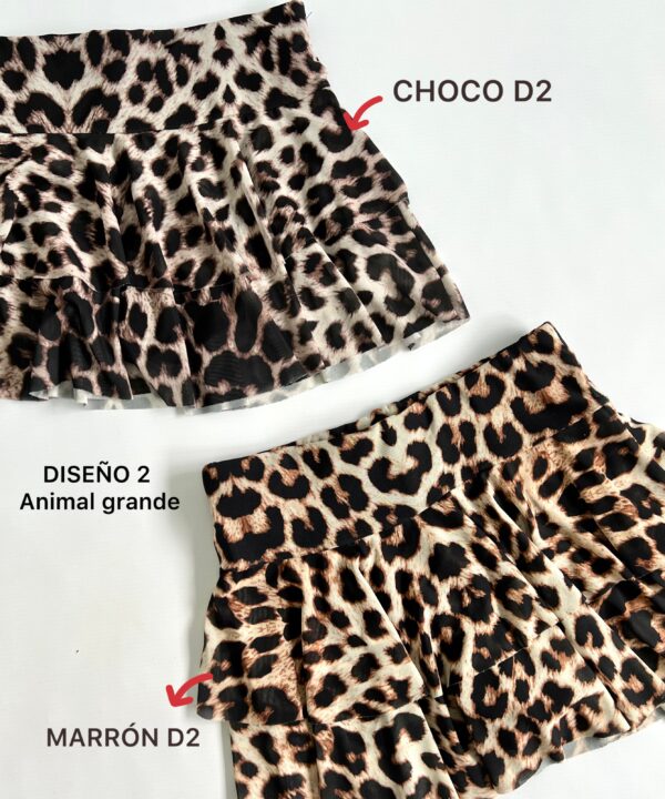 636/TA-POLLERA SKORT TUL ANIMAL DOBLE VOLADO CON SHORT Y ELASTICO CINTURA