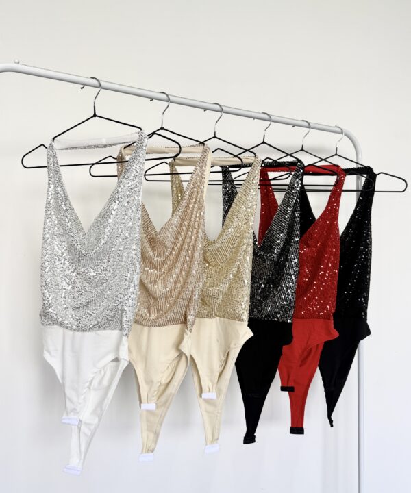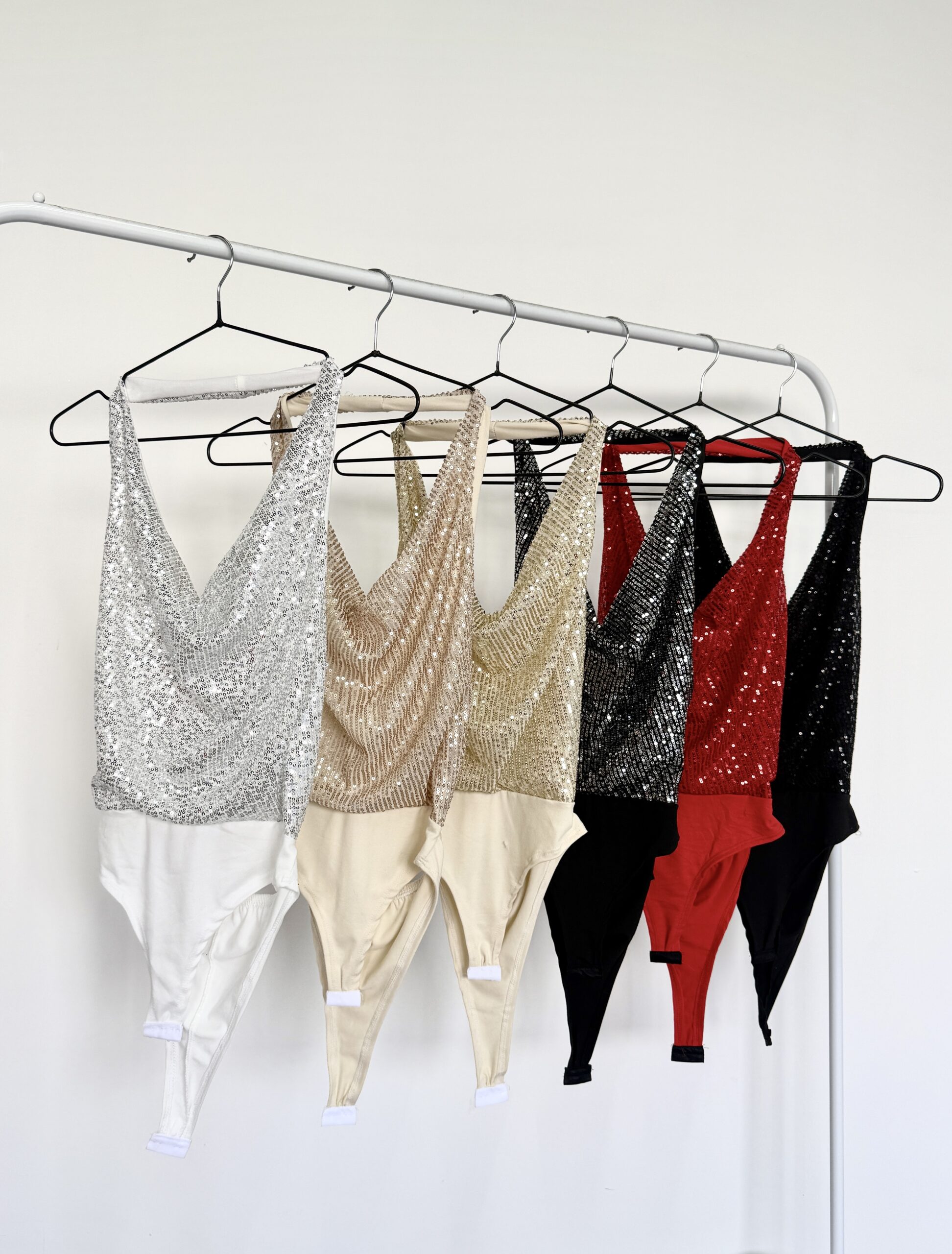 6522/LE-BODY LENTEJUELA BUCHE FORRADO ESPALDA DESCUBIERTO DOBLE TIRA PARA ATAR - champagne CHAMPAGNE en stock $0