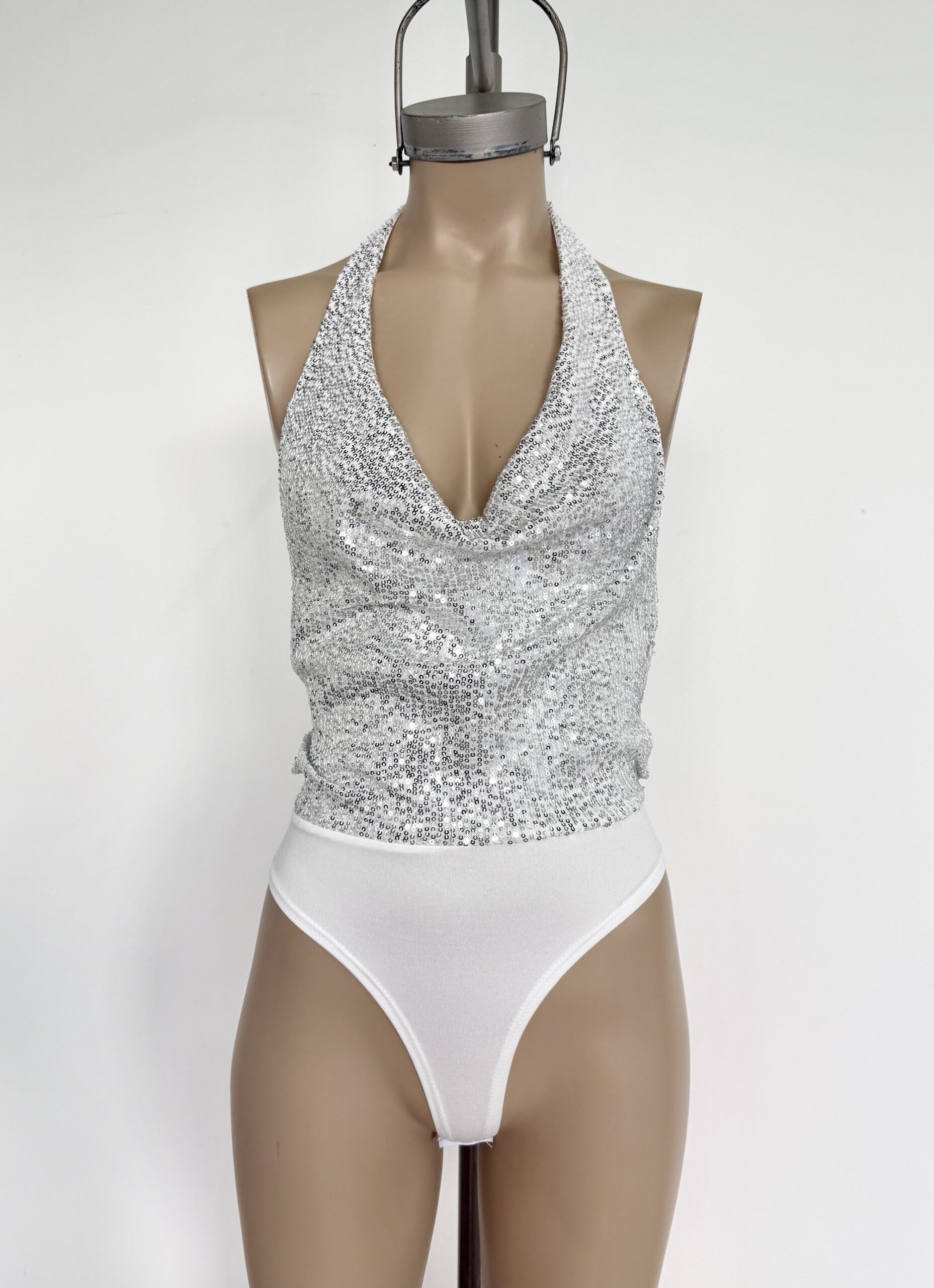 6522/LE-BODY LENTEJUELA BUCHE FORRADO ESPALDA DESCUBIERTO DOBLE TIRA PARA ATAR - negro-plata NEGRO/PLATA en stock $0