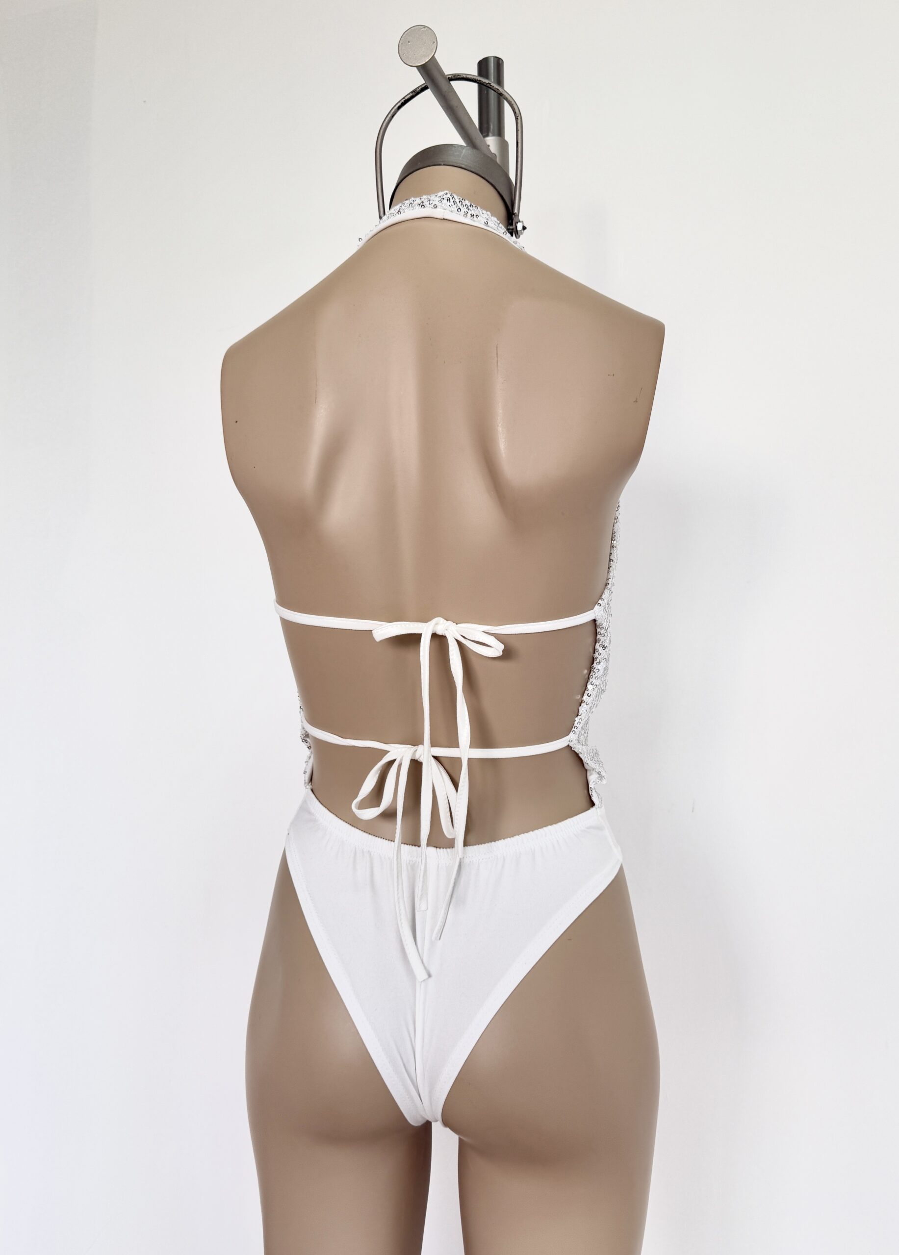 6522/LE-BODY LENTEJUELA BUCHE FORRADO ESPALDA DESCUBIERTO DOBLE TIRA PARA ATAR - blanco BLANCO en stock $0