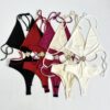 6810/M-BODY MICROFIBRA MARILYN ESCOTADO CON CINTURON HEBILLA V BRILLO FRUNCIDO